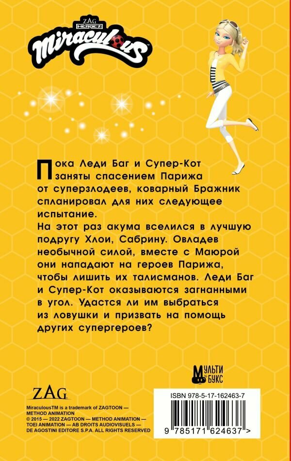 Пока Леди Баг и Супер-Кот заняты спасением Парижа от суперзлодеев, коварный Бражник спланировал для них следующее испытание. На этот раз акума вселился в лучшую подругу Хлои, Сабрину. Овладев необычной силой, вместе с Маюрой они нападают на героев Парижа, чтобы лишить их талисманов. Леди Баг и Супер-Кот оказываются загнанными в угол. Удастся ли им выбраться из ловушки и призвать на помощь других супергероев?
