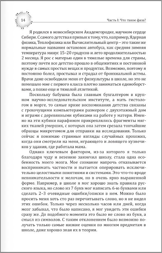 "Всю жизнь от Сибири до Калифорнии, от нейрофизиологии до квантовой физики, в нелегальных экспериментах с тысячами людей я искал элегантное решение одной странной загадки. Но найденный ответ поверг меня в шок и изменил представление о всей реальности. В отличие от других, я предлагаю не просто взглянуть на окружающий мир с иного ракурса, а опробовать самостоятельно проверенные на тысячах людей пошаговые практики, которые уже через несколько часов могут разрушить основы вашей ограниченной реальности и дадут новые революционные инструменты получения информации, самолечения, путешествий, развлечений и многого другого".Этому высказыванию уже несколько лет. За это время через школу Михаила Радуги прошло не менее 20 000 учеников, а видеокурсы стабильно набирают в просмотрах до 3 млн зрителей.С 2020 года команда автора стала лидером по количеству исследований и научных публикаций об осознанных сновидениях, а термин "фаза" наконец-то официально признан в научных кругах. В 2021 году была основана лаборатория по исследованию фазовых состояний LaBerge, которая занимается изучением феномена и возможностей человеческого мозга.Даже спустя годы эта книга остается лидером на рынке книг по изучению осознанных сновидений, не имея аналогов. Благодаря масштабному и понятному описанию феномена и техник попадания в осознанные состояния она и сегодня поможет любому, кто хочет познать феномен "фазы" на практике.