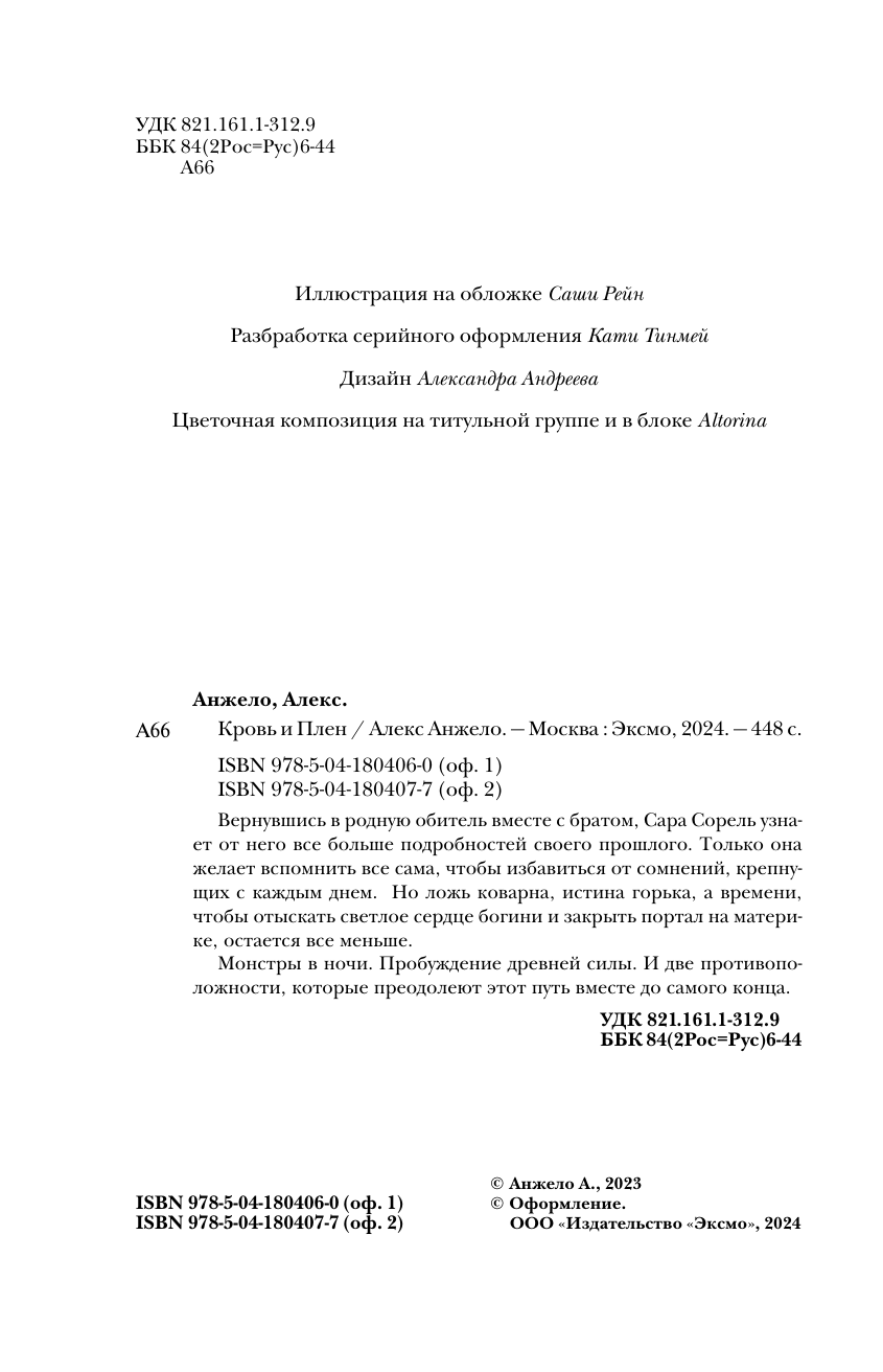 Кровь и Плен. Оформление Сары (Алекс Анжело); Эксмо, Редакция 1, 2024