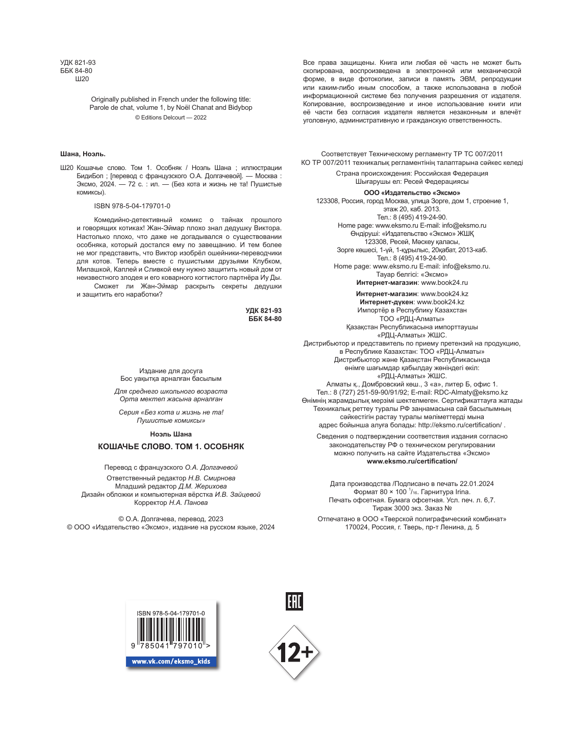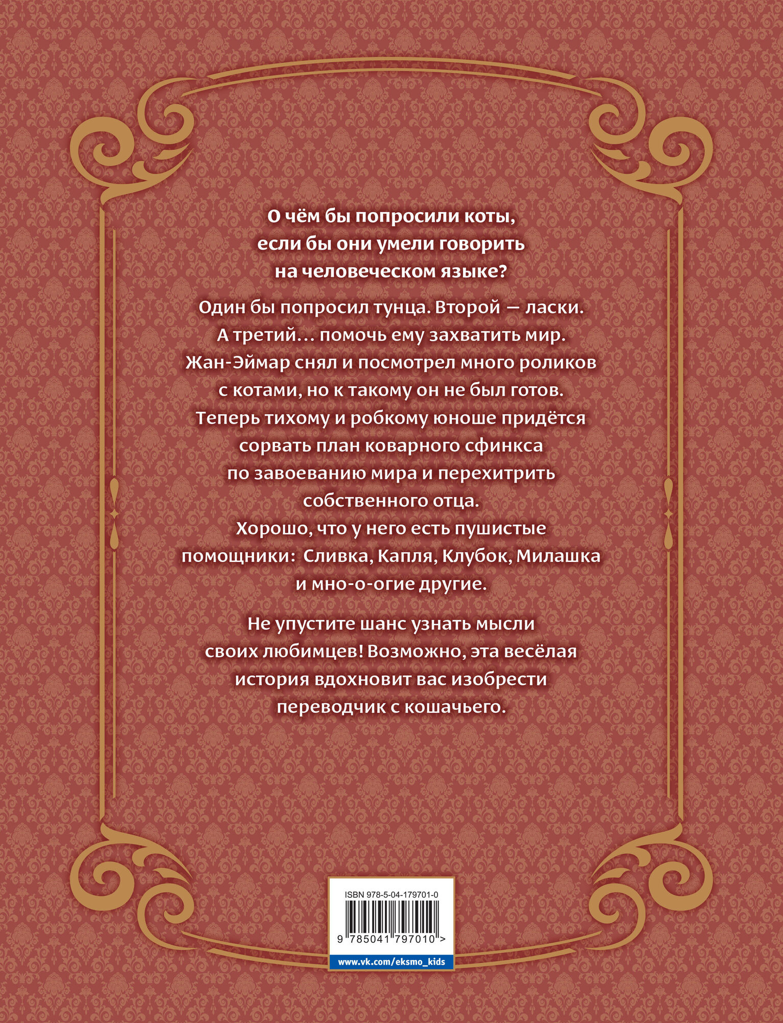 Комедийно-детективный комикс о тайнах прошлого и говорящих котиках! Жан-Эймар плохо знал дедушку Виктора. Настолько плохо, что даже не догадывался о существовании особняка, который достался ему по завещанию. И тем более не мог представить, что Виктор изобрёл ошейники-переводчики для котов. Теперь вместе с пушистыми друзьями Клубком, Милашкой, Каплей и Сливкой ему нужно защитить новый дом от неизвестного злодея и его коварного когтистого партнёра Иу Ды. Сможет ли Жан-Эймар раскрыть секреты дедушки и защитить его наработки?
