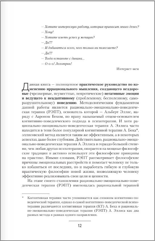 Вы наконец-то откажетесь от иррациональных представлений о себе, других и мире, улучшите свои эмоциональные и поведенческие реакции и существенно повысите качество жизни.