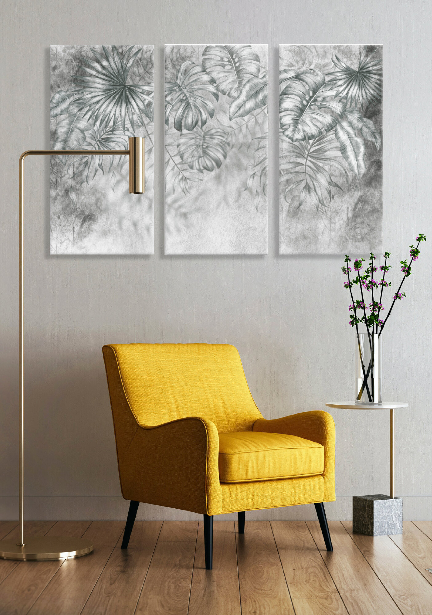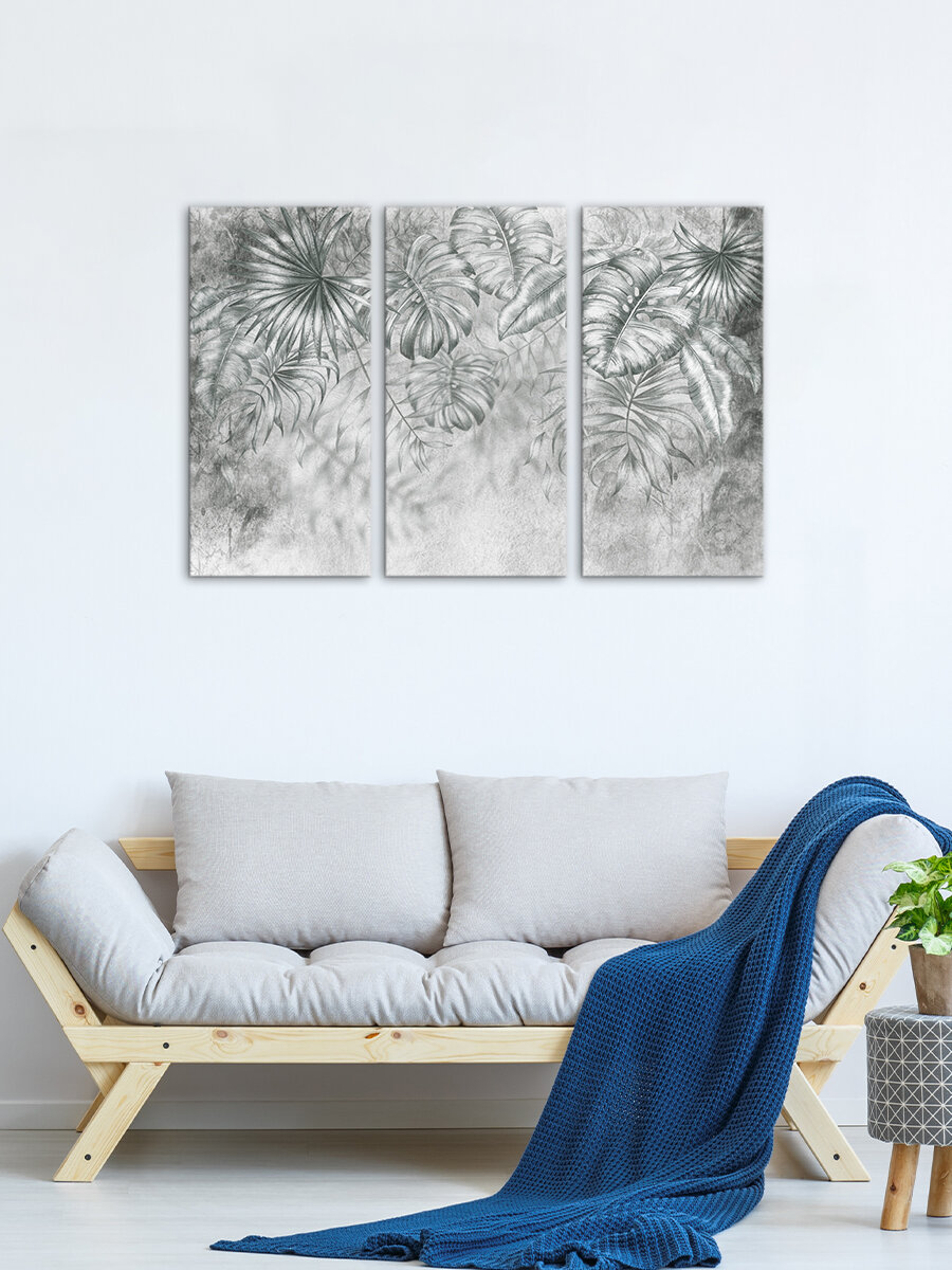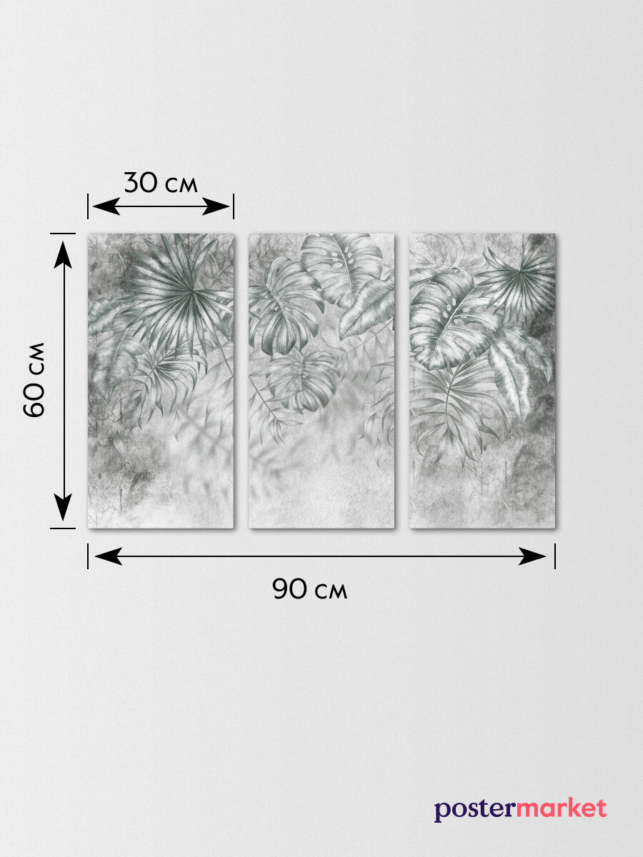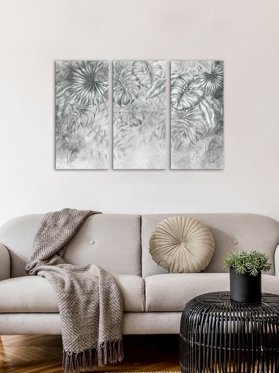 Картина на МДФ Листья серые 30x60 см 3 шт POSTERMARKET