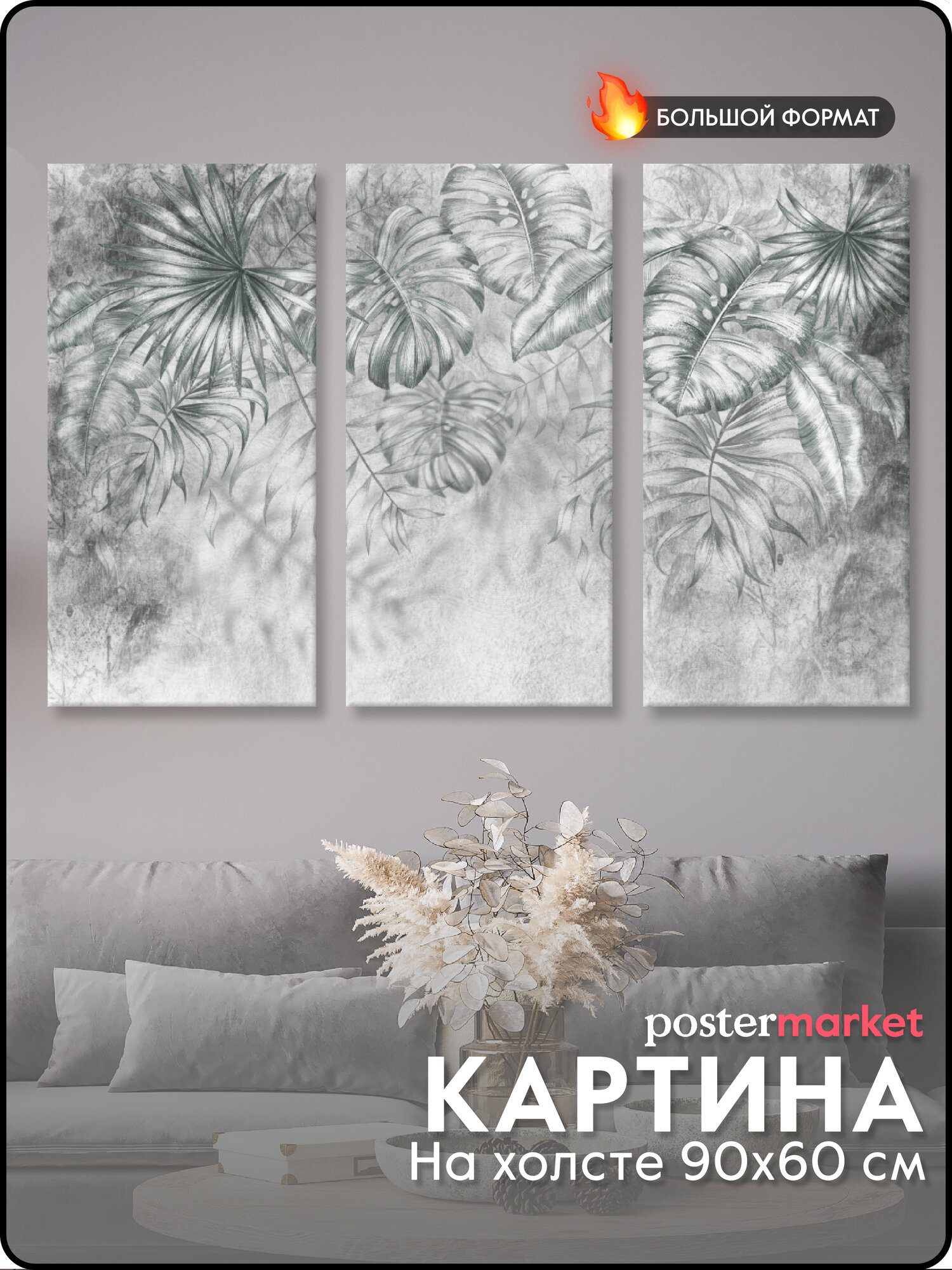 Сервис сравнения цен СкидкаГИД предлагает сравнить цены на товар «Картина на МДФ Листья серые 30x60 см 3 шт POSTERMARKET»