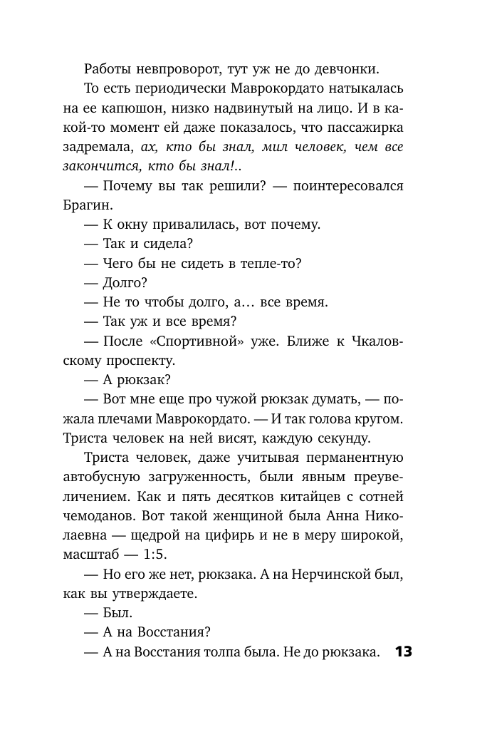 Холодный Петербург. Унылый скрип автобусных дверей. Сорок две остановки. Пассажиры входят и выходят. Ритмичный и бесконечный круговорот. И никому нет дела до девушки, которая сидит на заднем сидении, прислонившись к окну. Она неподвижна. Она мертва. Позже криминальный эксперт скупо констатирует: девушку убил профессионал. Хладнокровно и точно он вонзил в ее тело нож, что вызвало мгновенную смерть. И никаких зацепок. Только вопросы. И порывистый ветер с Невы, гуляющий по сырым кварталам и нагоняющий смертельную тоску…