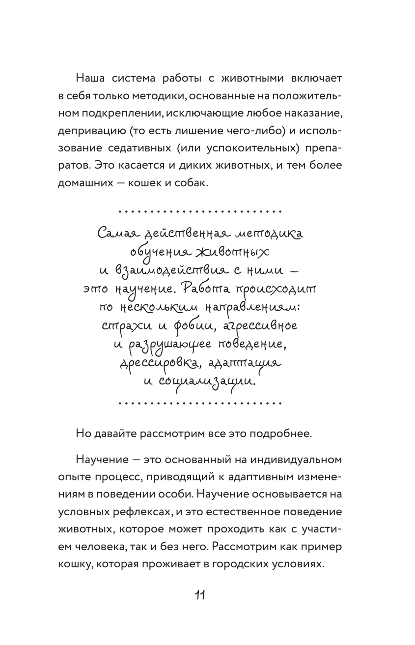 Эту книгу без преувеличения можно назвать настоящим путеводителем по миру кошек. Или, если хотите, ключом к четкому пониманию их поведения. Авторы, опытные ветеринары, зоопсихологи и тренеры диких и домашних животных, делятся проверенными рекомендациями: как вести себя с кошкой, как логично и обоснованно решать возникающие проблемы в ее поведении, обучать ее необходимым навыкам и даже тренировать. Вы узнаете, как без наказаний и насилия решать проблемы, связанные с поведением кошки: нечистоплотностью, вокализацией, фобиями и агрессией; изучите этапы развития котенка и сможете заложить все нужные навыки в самом раннем возрасте.