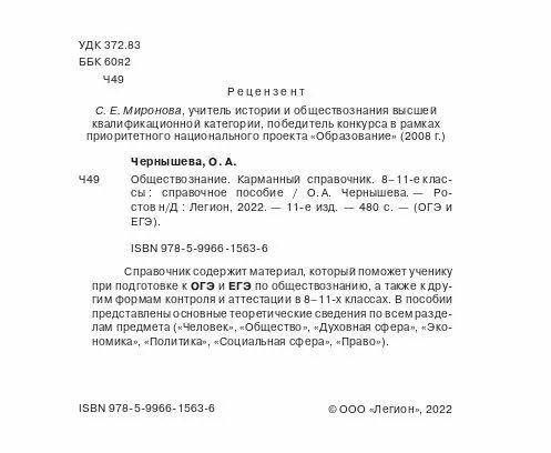 Сервис сравнения цен СкидкаГИД предлагает сравнить цены на товар «Книга: Обществознание. Карманный справочник. 8–11 классы (Ольга Александровна Чернышева); Легион, 2023»
