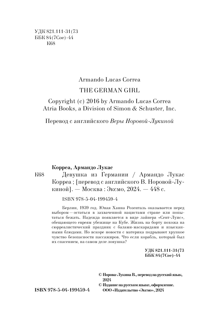 Книга: Девушка из Германии (Армандо Лукас Корреа); Эксмо, Редакция 1, 2024