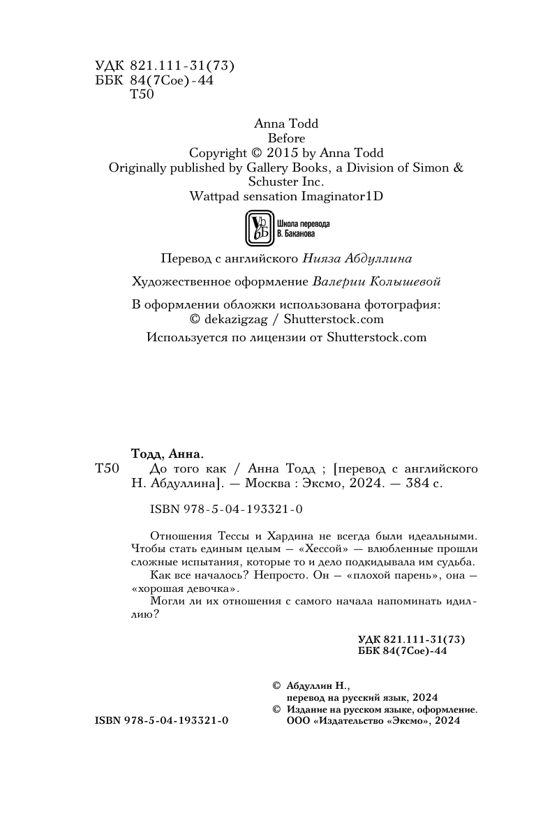Книга: До того как (Анна Тодд); Эксмо, Редакция 1, 2024
