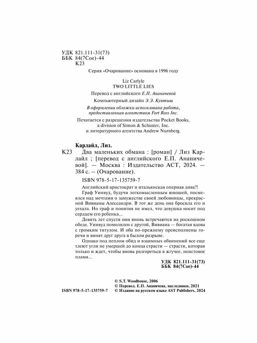 Книга: Два маленьких обмана (Лиз Карлайл); АСТ, 2024