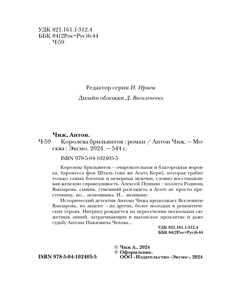 Книга: Королева брильянтов (Антон Чиж); Эксмо, 2024