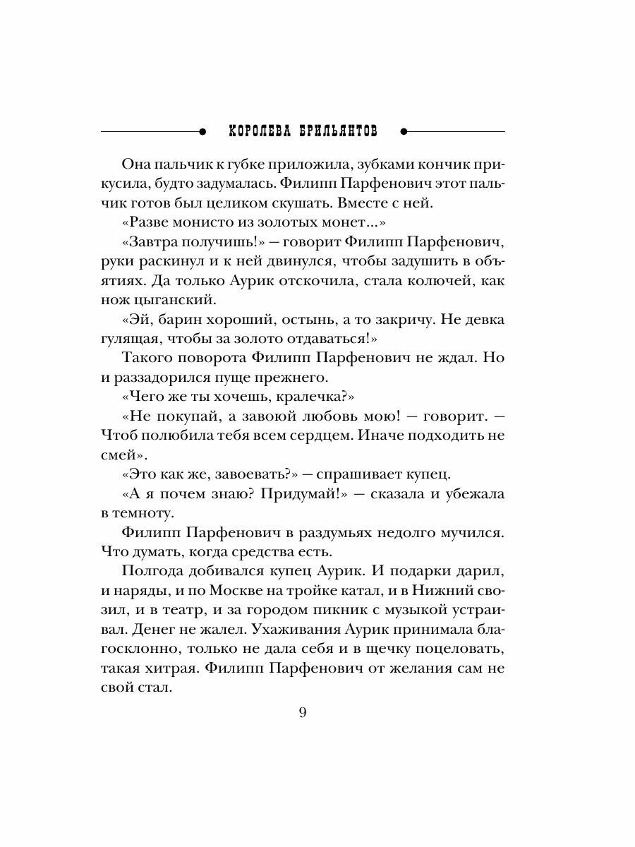 Королева брильянтов — очаровательная и благородная воровка, баронесса фон Шталь (она же Агата Керн), которая грабит только самых богатых и неверных мужчин, словно восстанавливая женскую справедливость. Алексей Пушкин — коллега Родиона Ванзарова, сыщик, сумевший разглядеть в Агате не просто преступницу, но… помощника. И… женщину.
