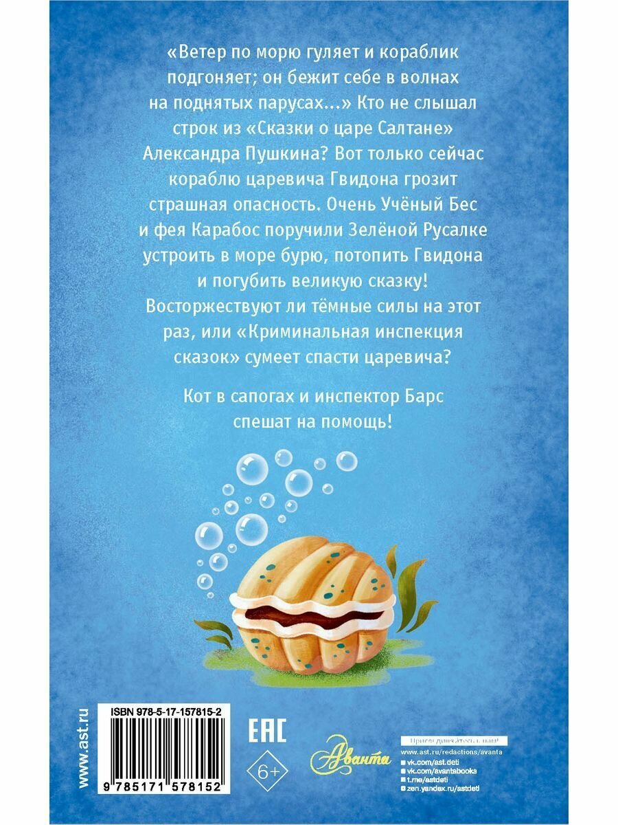 "Ветер по морю гуляет и кораблик подгоняет; он бежит себе в волнах на поднятых парусах…" Кто не слышал строк из "Сказки о царе Салтане" Александра Пушкина? Вот только сейчас кораблю царевича Гвидона грозит страшная опасность. Очень Учёный Бес и фея Карабос поручили Зелёной Русалке устроить в море бурю, потопить Гвидона и погубить великую сказку! Восторжествуют ли тёмные силы на этот раз, или "Криминальная инспекция сказок" сумеет спасти царевича?