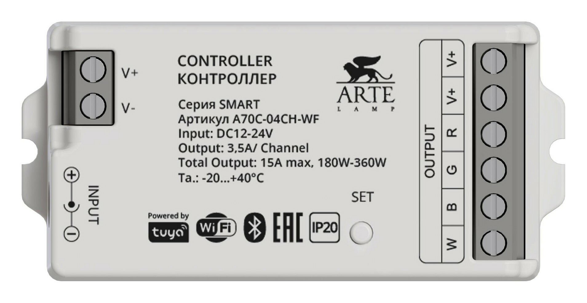 Контроллер smart для управления светодиодной лентой 12-24в 4 канала 1х35a rf 24ггц ip20 Arte Lamp a70c-04ch-wf