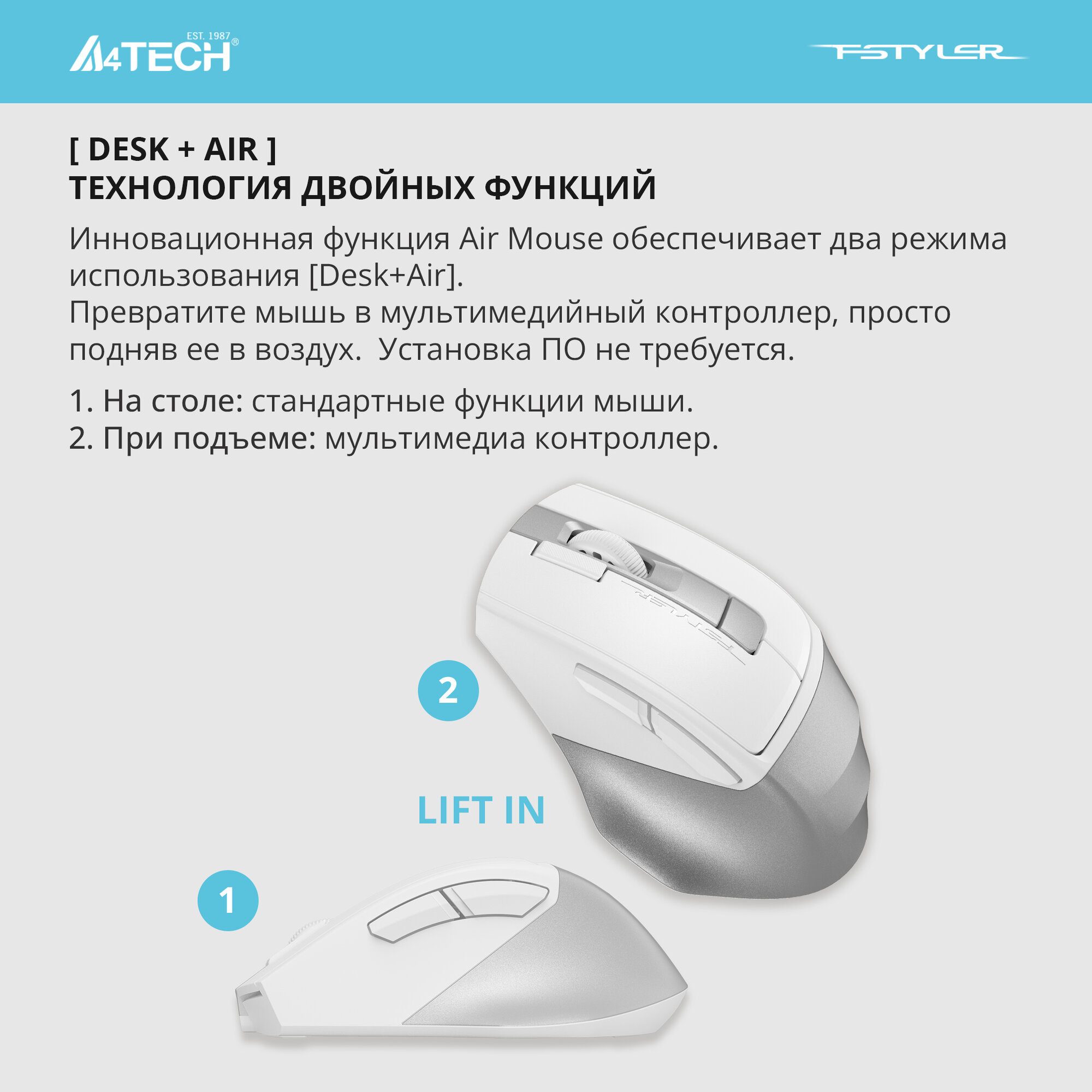 - Инновационная функция Air Mouse обеспечивает два режима использования [Desk+Air]. Превратите мышь в мультимедийный контроллер, просто подняв ее в воздух.
