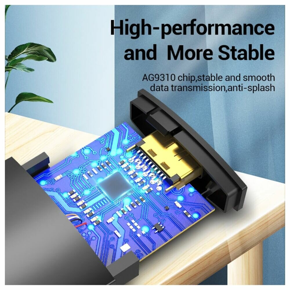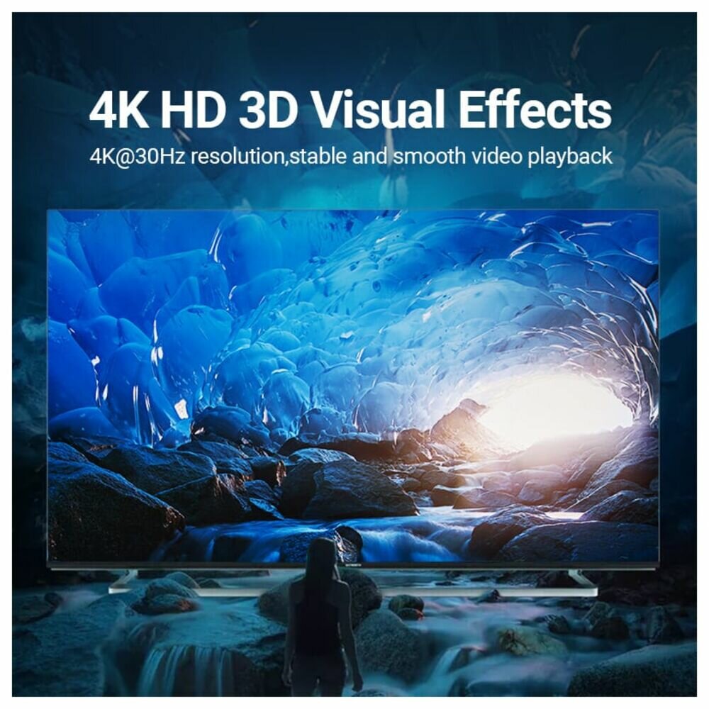 Поддерживает разрешение 4К при 30 Гц и 3D-эффекты, обеспечивая стабильное и плавное воспроизведение видео. Высокопроизводительный чип AG9310 обеспечивает стабильную и плавную передачу данных и защиту от брызг. Сердечник из луженой меди и экранирование из алюминиевой фольги защищают от помех.