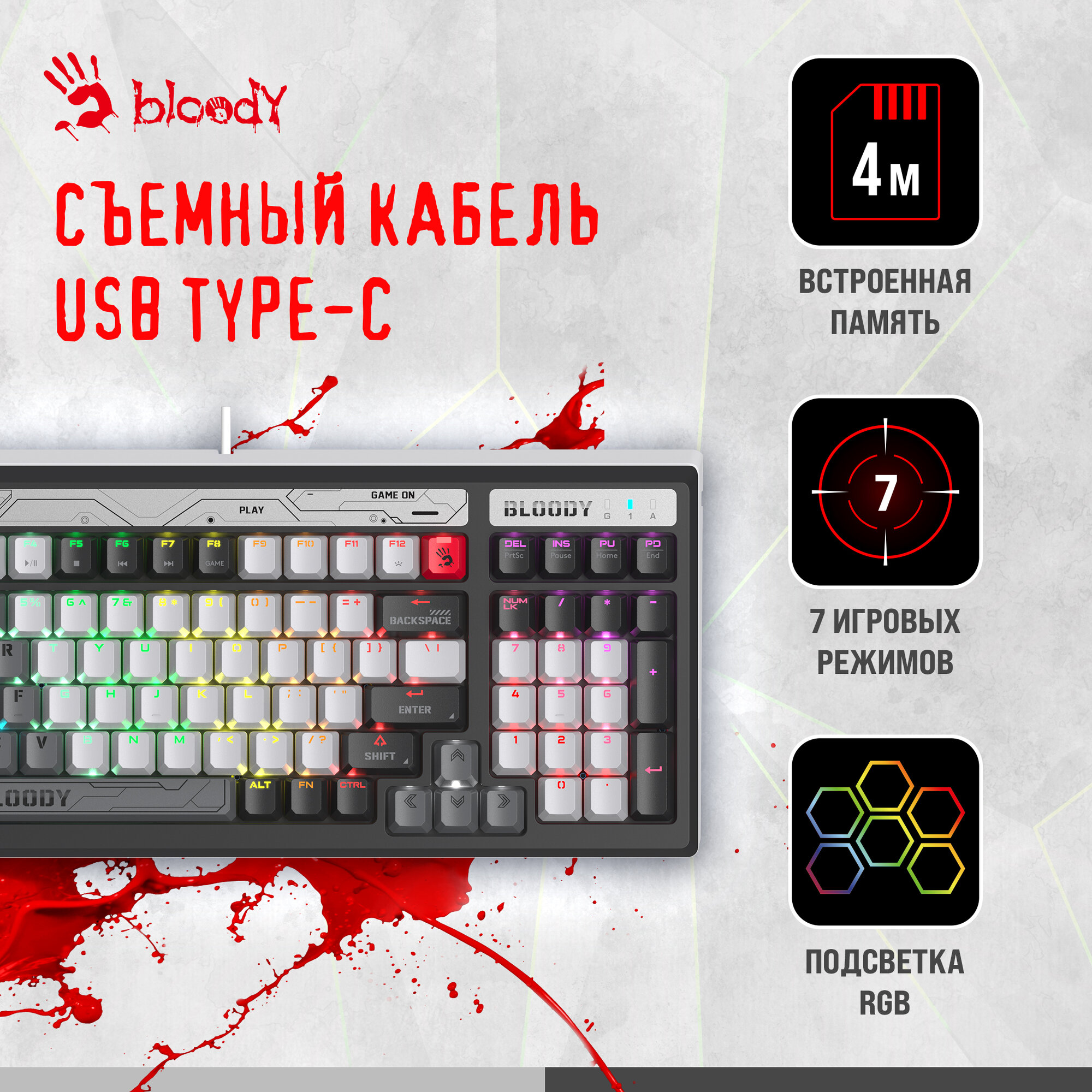 Клавиатура A4Tech серая/черная механическая USB for gamer LED (1975284) Bloody B950