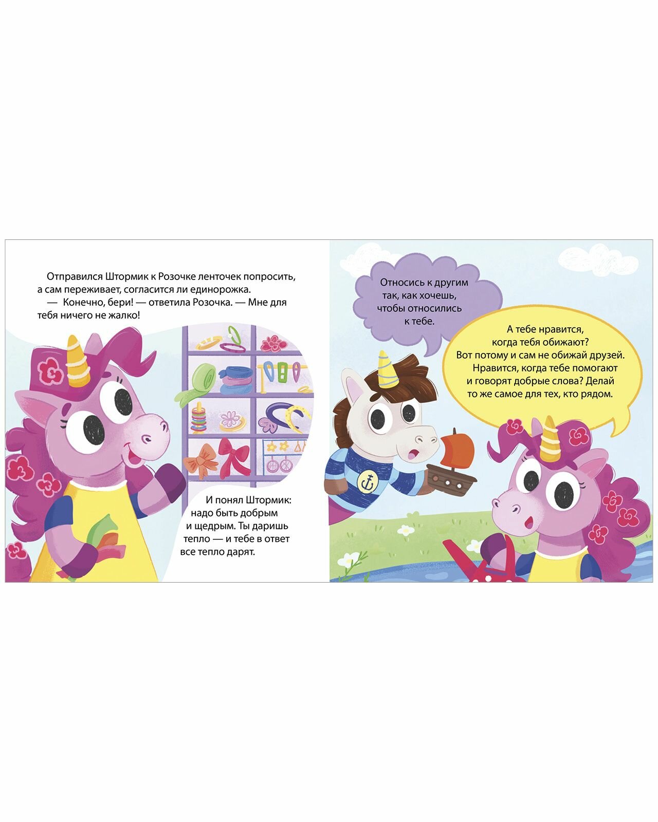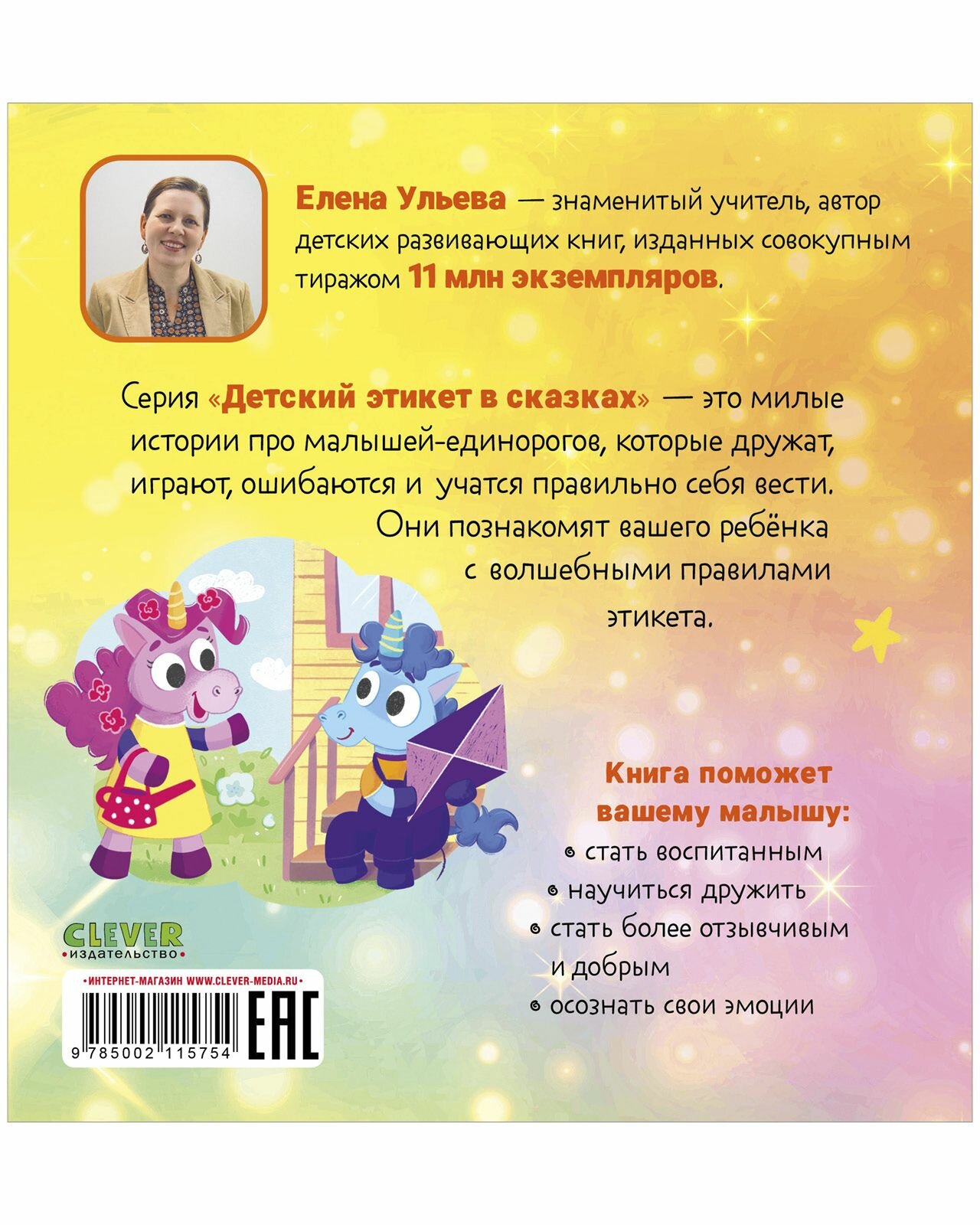 Серия «Детский этикет в сказках» - это милые истории про малышей-единорогов, которые дружат, играют, ошибаются и учатся правильно себя вести. Они познакомят вашего ребёнка с волшебными правилами этикета. Книга поможет вашему малышу: • стать воспитанным • научиться дружить • стать более отзывчивым и добрым • осознать свои эмоции