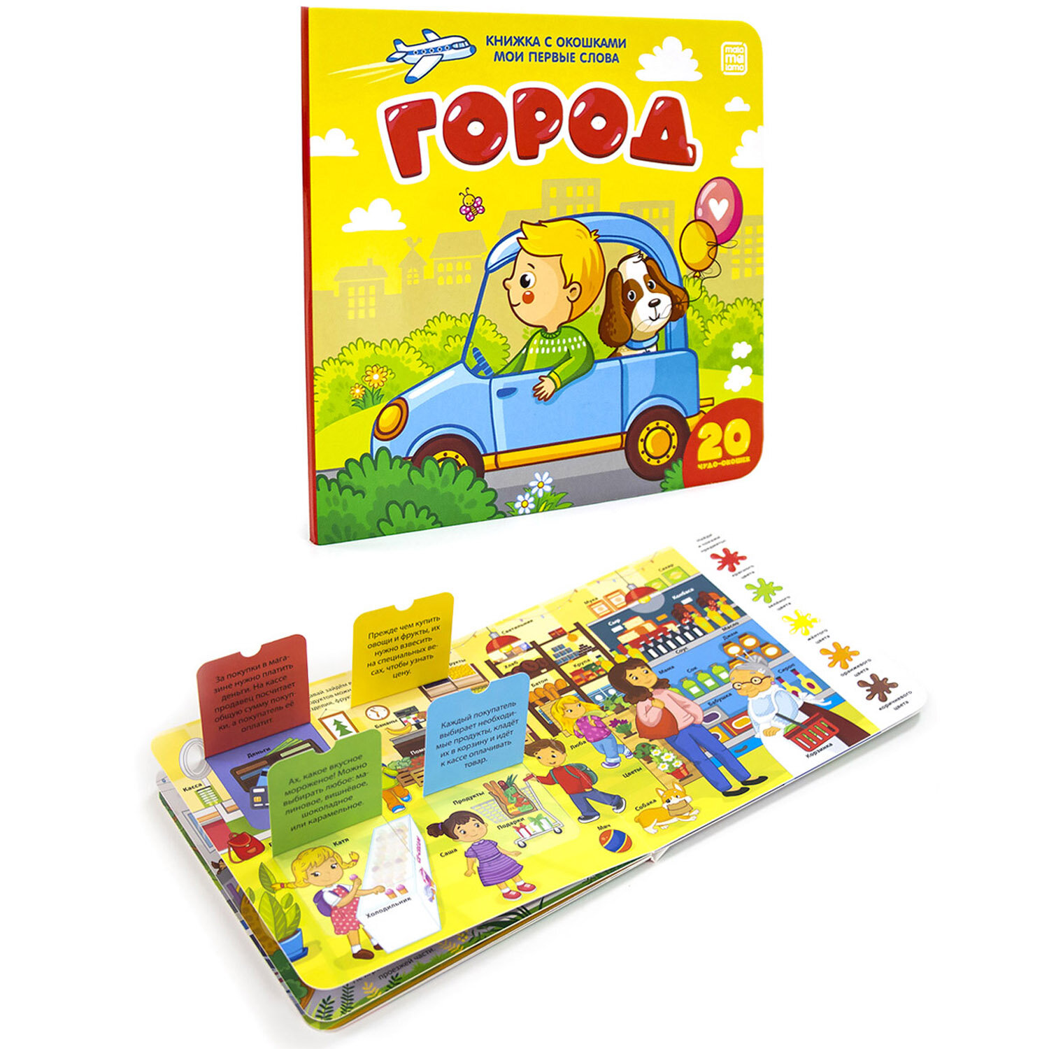 Набор из 4-х книг с окошками "Мои первые слова" для развития ребенка! Книги поможет вашему малышу расширить словарный запас, потренировать память, усидчивость и фантазию. На каждом развороте представлена новая тематическая группа слов и задачка на смекалку и внимательность. Красочные иллюстрации помогут надолго задержать внимание, а открывающиеся окошки превратят чтение в увлекательную игру. Страницы выполнены из мелованного картона. Для удобства первого открывания предусмотрена выемка под палец на каждом окошке. Энциклопедия для малышей будет интересна маме и папе как возможность проводить больше времени с ребенком. Книжка игрушка со множеством открывающихся окошек будет интересна мальчикам и девочкам. Книги для детей предназначены для развития речи и памяти, внимания и усидчивости. Энциклопедия для детей отлично подойдет в качестве обучающего пособия для занятий малышей в детском саду. Книга представляет собой ВИММЕЛЬБУХ с окошками. Яркая и привлекательная книга удобного для детских ручек формата напечатана на высококачественном ламинированном картоне повышенной прочности с закругленными краями страниц. Книга с «окошками» — отличный подарок для ребёнка, а также прекрасное дополнение к домашней библиотеке. Книжки с окошками отлично подойдет для игры в дороге. Формат книги: 160х160 мм.
