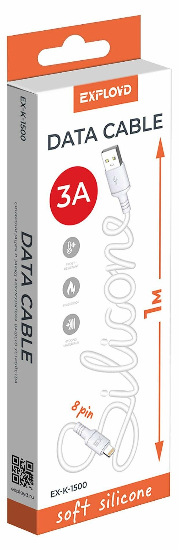 Дата-кабель Exployd EX1500 3А 8 PIN белый 1 м