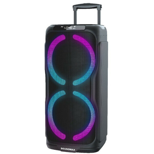 К источнику звука колонка может подключаться посредством Bluetooth 5.0, с помощью AUX кабеля, поддерживает USB/MicroSD, а также радио, работающее в FM-диапазоне. Система может работать как от сети, так и от аккумулятора. К портативной аудиосистеме возможно подключить микрофон с караоке и гитарную установку.