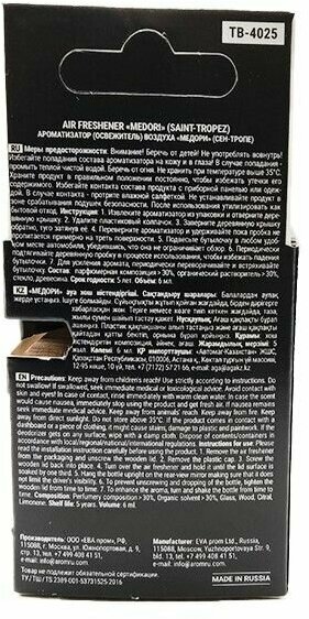 Ароматизатор автомобильный Medori Saint-Tropez аналог аромата Versace Eau fraiche подвесной 6 мл