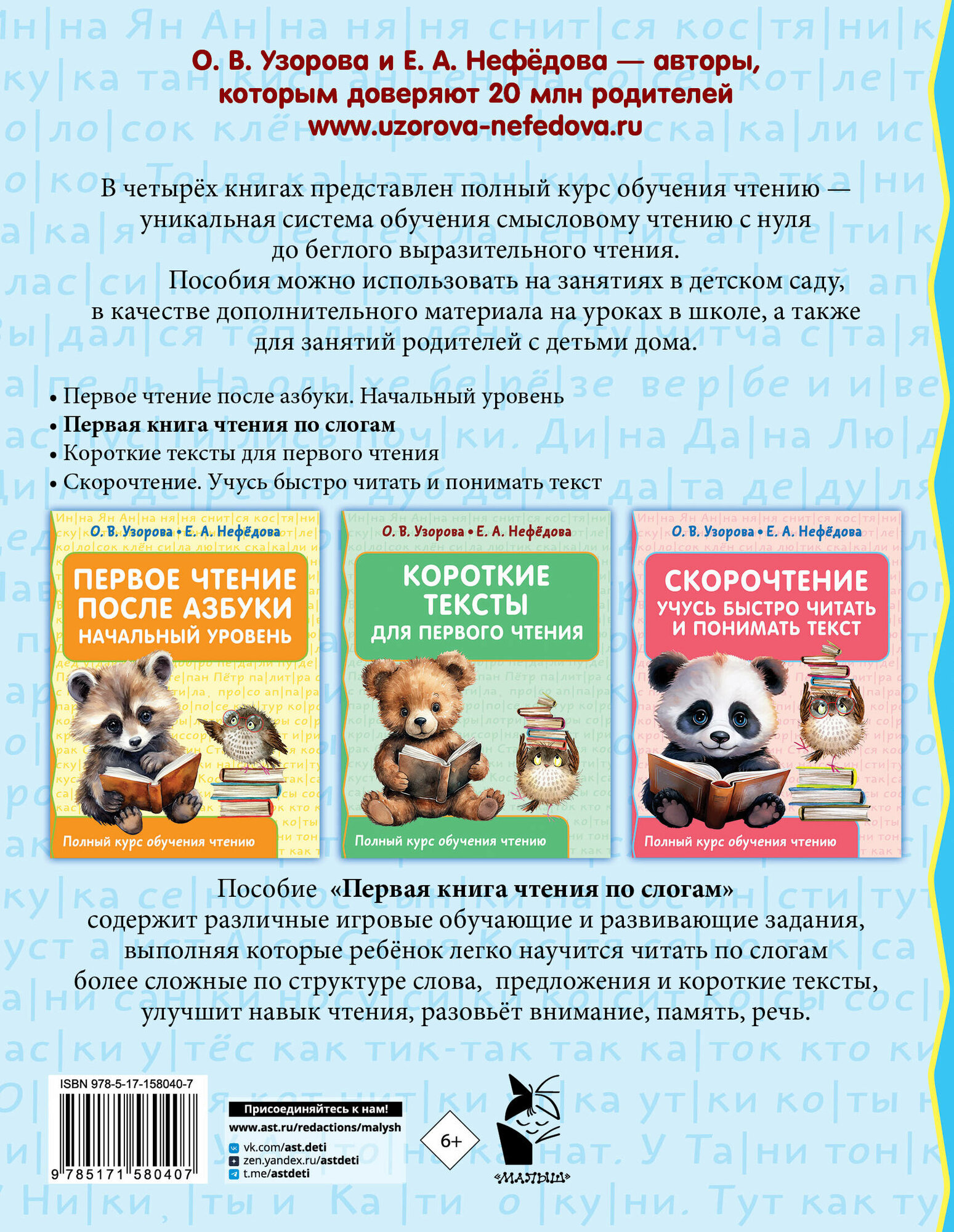 Первая книга чтения по слогам (Елена Алексеевна Нефедова, Ольга Васильевна Узорова); АСТ, 2024