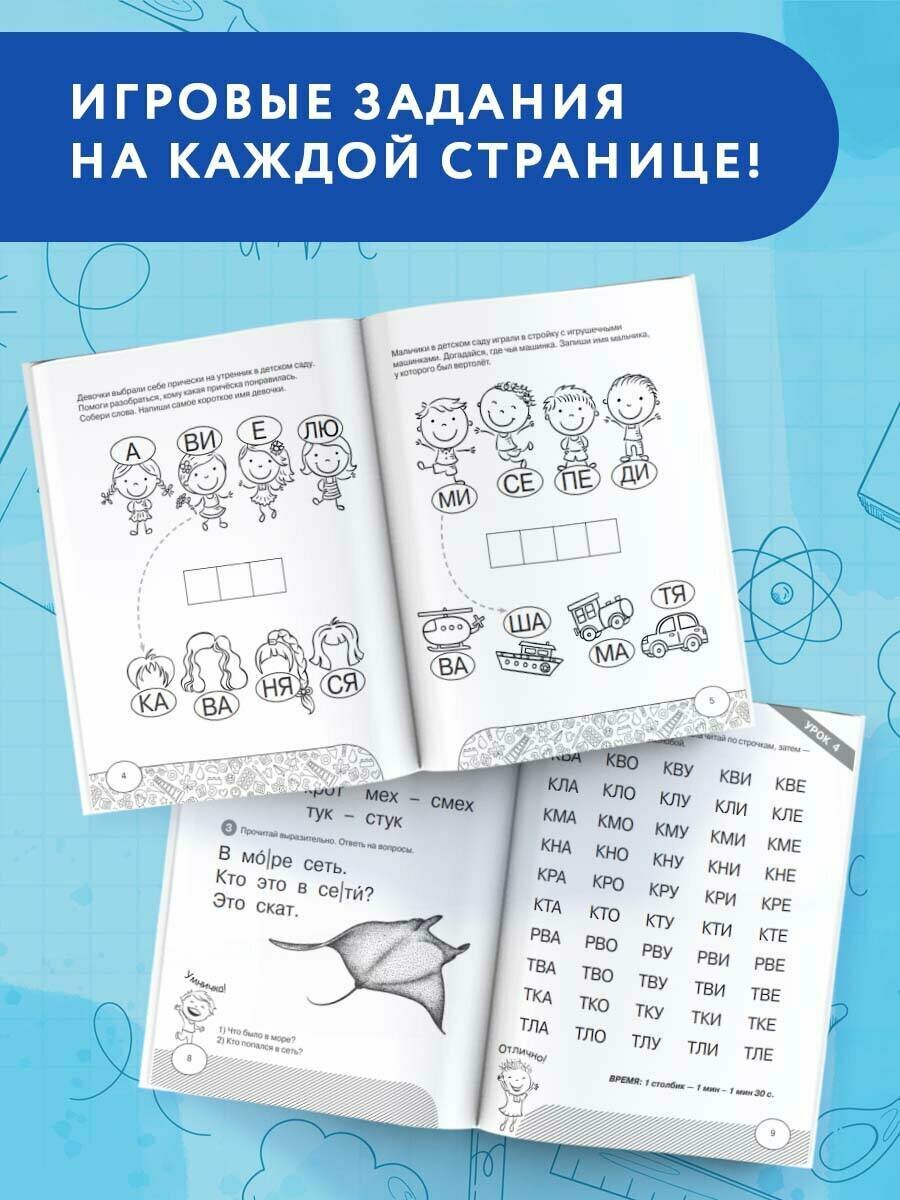 Книга содержит различные игровые обучающие и развивающие задания, выполняя которые ребёнок легко научится читать по слогам более сложные по структуре слова, предложения и короткие тексты, улучшит навык чтения, разовьёт внимание, память, речь.
