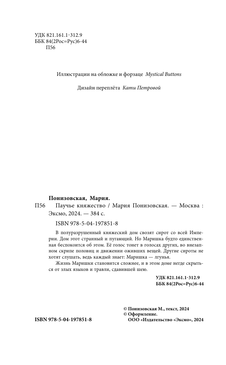 Книга: Паучье княжество (Мария Понизовская); Эксмо, Черным-бело, Редакция 1, 2024