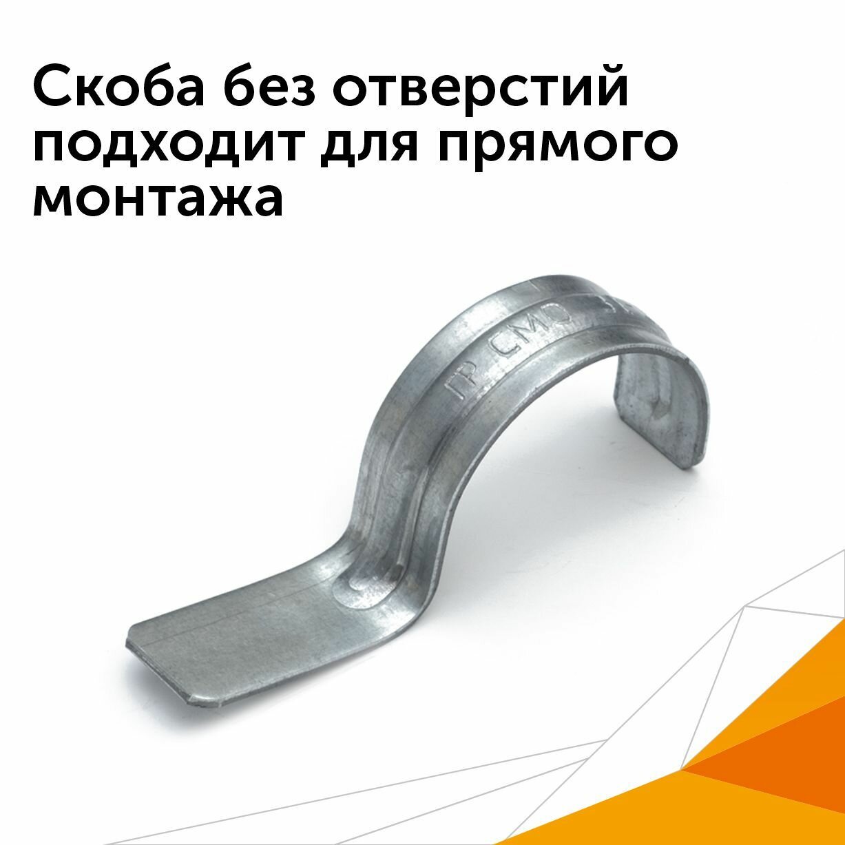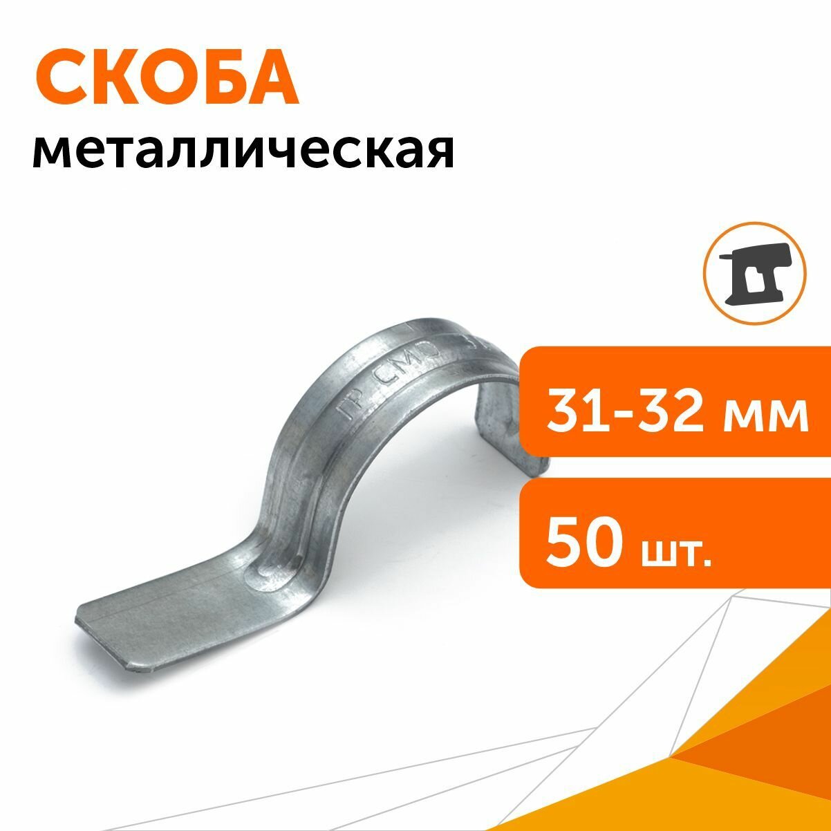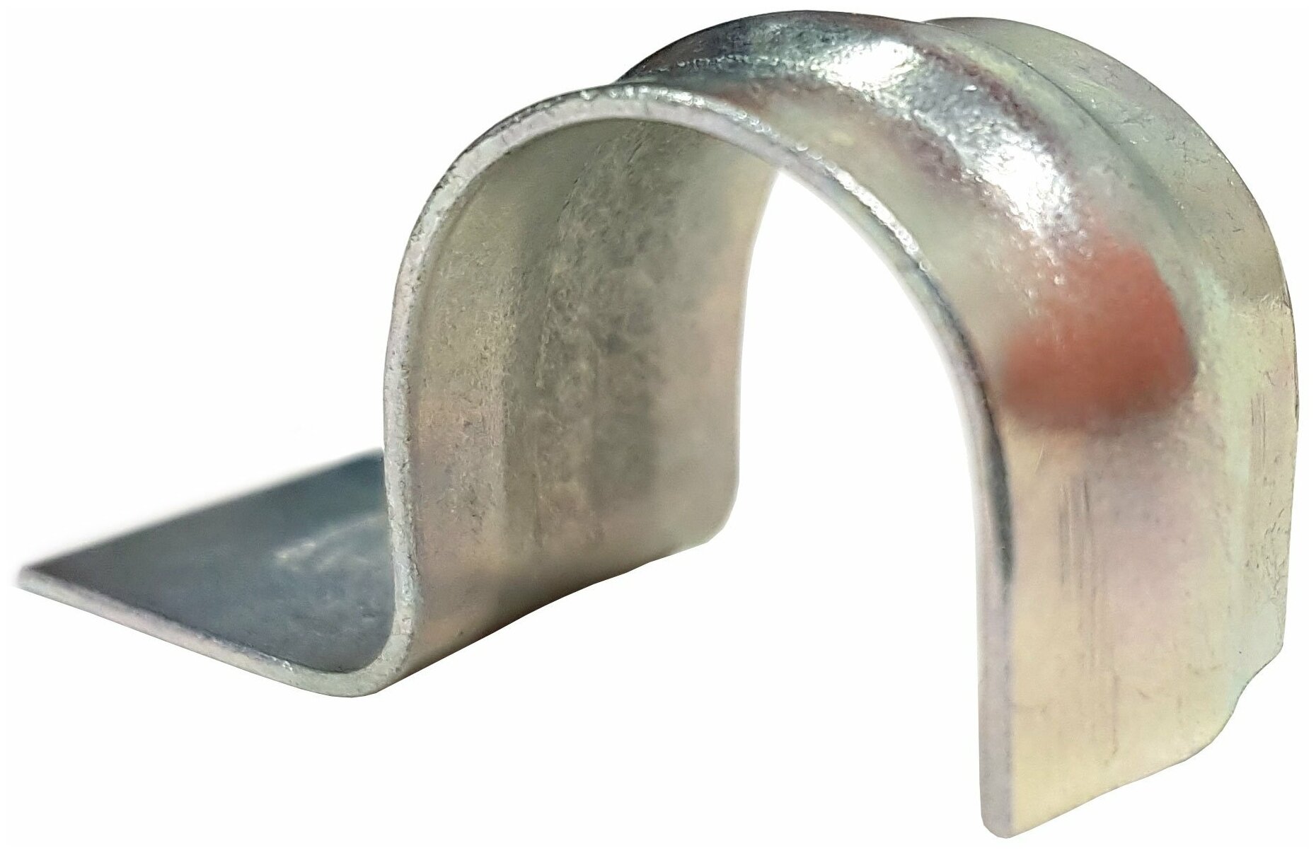Металлическая однолапковая скоба без отверстий Промрукав СМО d31-32 мм, для монтажного пистолета предназначена для крепления металлорукавов, металлических и пластиковых труб к различным поверхностям, а также для монтажа кабеля и провода.