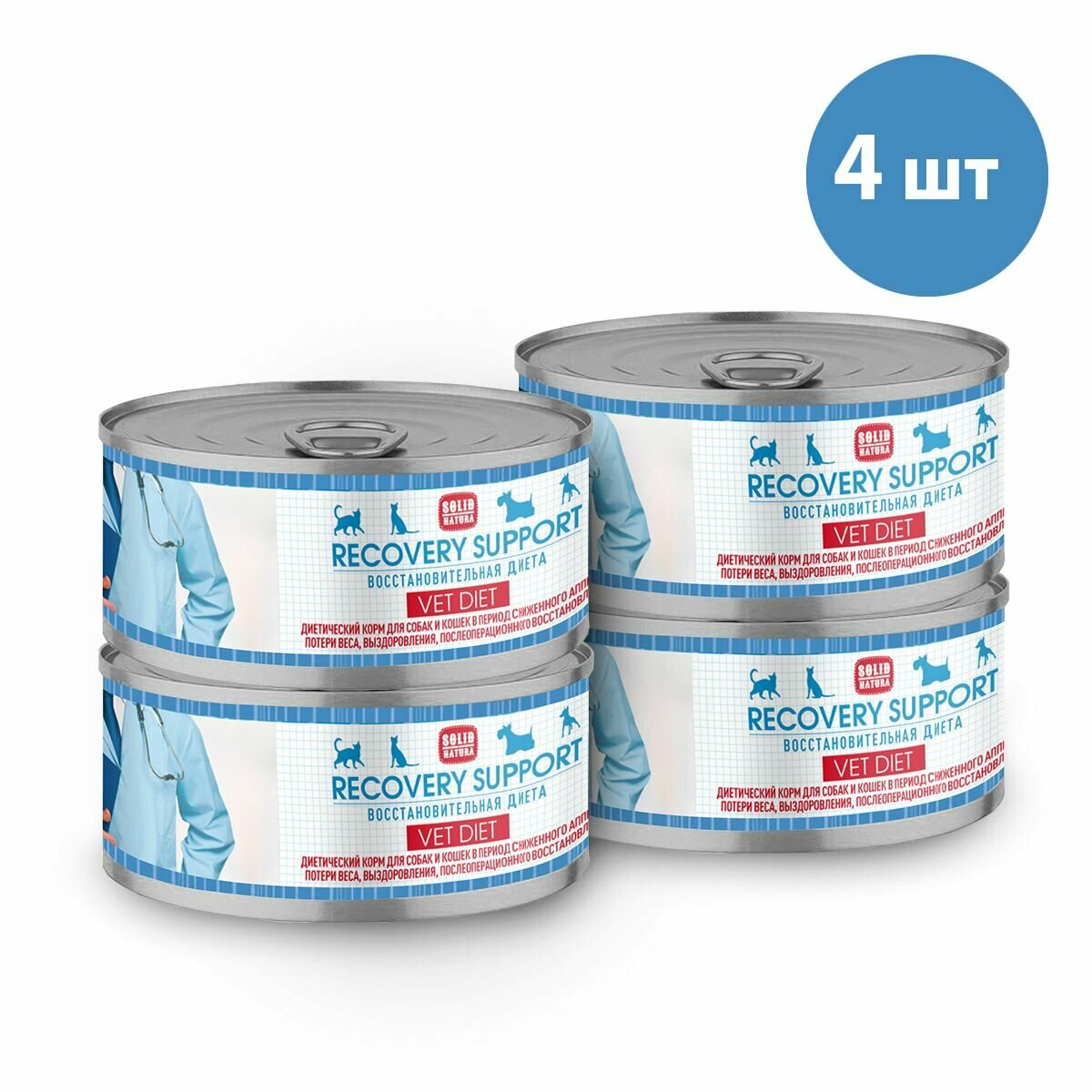 Solid Natura VET Recovery Support. Влажный диетический корм Солид Натура предназначен для собак и кошек всех пород и возрастов в период сниженного аппетита, потери веса, выздоровления, послеоперационного восстановления . По ингредиентному составу относится к кормам суперпремиум класса.