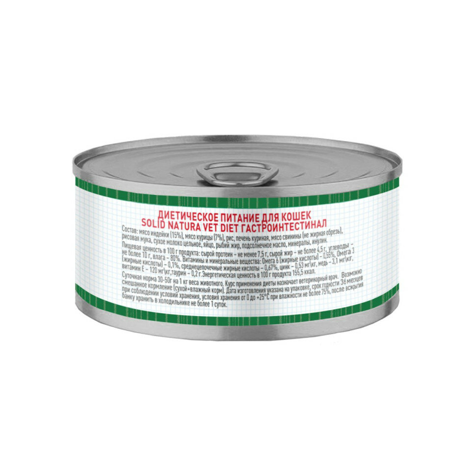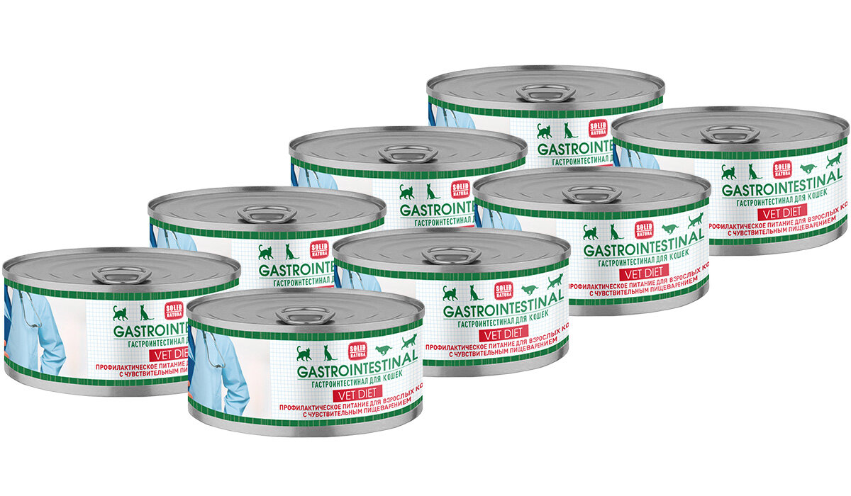 Solid Natura VET Gastrointestinal. Влажный диетический корм Солид Натура предназначен для взрослых кошек всех пород с чувствительным пищеварением.