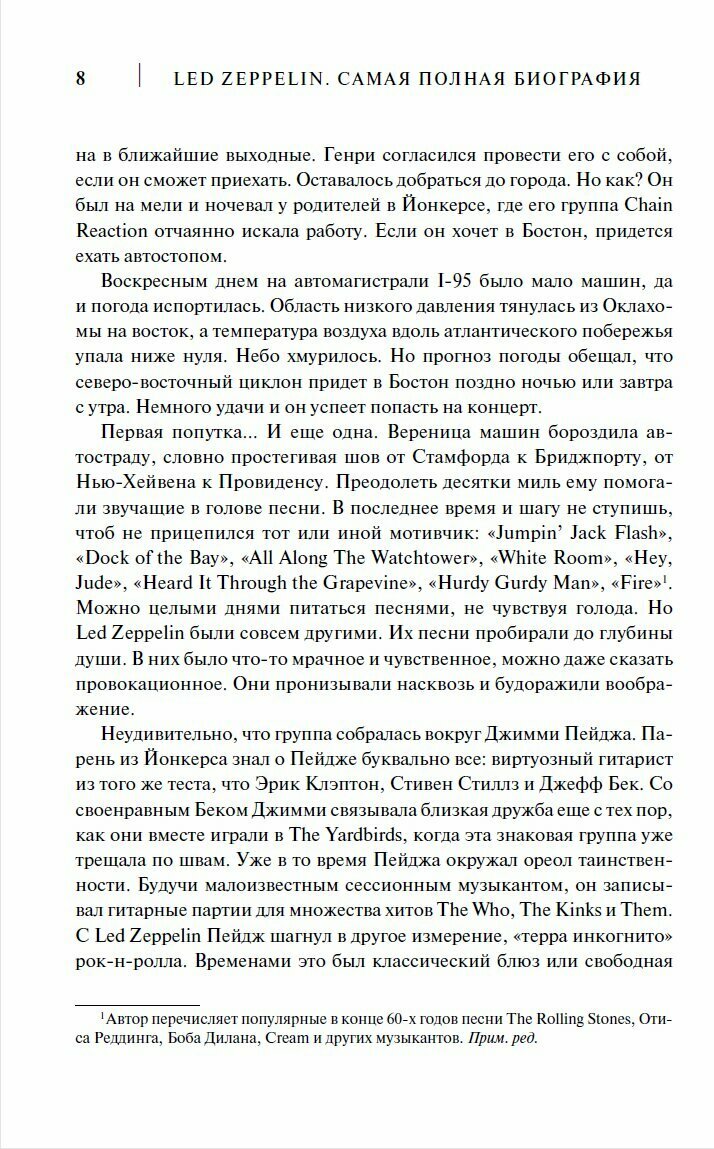 Почему Джимми Пейдж боялся, что Кит Ричардс прострелит ему ногу? Как Джону Бонэму удалось провести самый быстрый концерт в истории? Что тесно связывало участников группы и принцессу Диану? "Led Zeppelin. Самая полная биография" - это захватывающее путешествие через жизнь и творчество одной из самых влиятельных рок-групп в мировой музыкальной истории. Отведавшие славы с первого альбома, они создали уникальное звучание, смешав в себе английскую фолк-музыку, афроамериканский блюз и необузданную силу хард-рока. Их альбомы распродались тиражом более 300 миллионов копий по всему миру, поражая поклонников и недоброжелателей своим успехом. Автор книги, авторитетный журналист Боб Спитц, представляет читателям развернутый рассказ о творческом пути Джимми Пейджа, Роберта Планта, Джона Пола Джонса и Джона Бонэма, внимательно отделяя мифы о группе от реальности. Однако эта книга - не просто биография! Это насыщенное и драйвовое исследование эпохи, культуры и музыкальной революции XX века. Получите личный пропуск за кулисы мировой сцены и окунитесь в скандальный мир Led Zeppelin, который никогда не перестанет удивлять!
