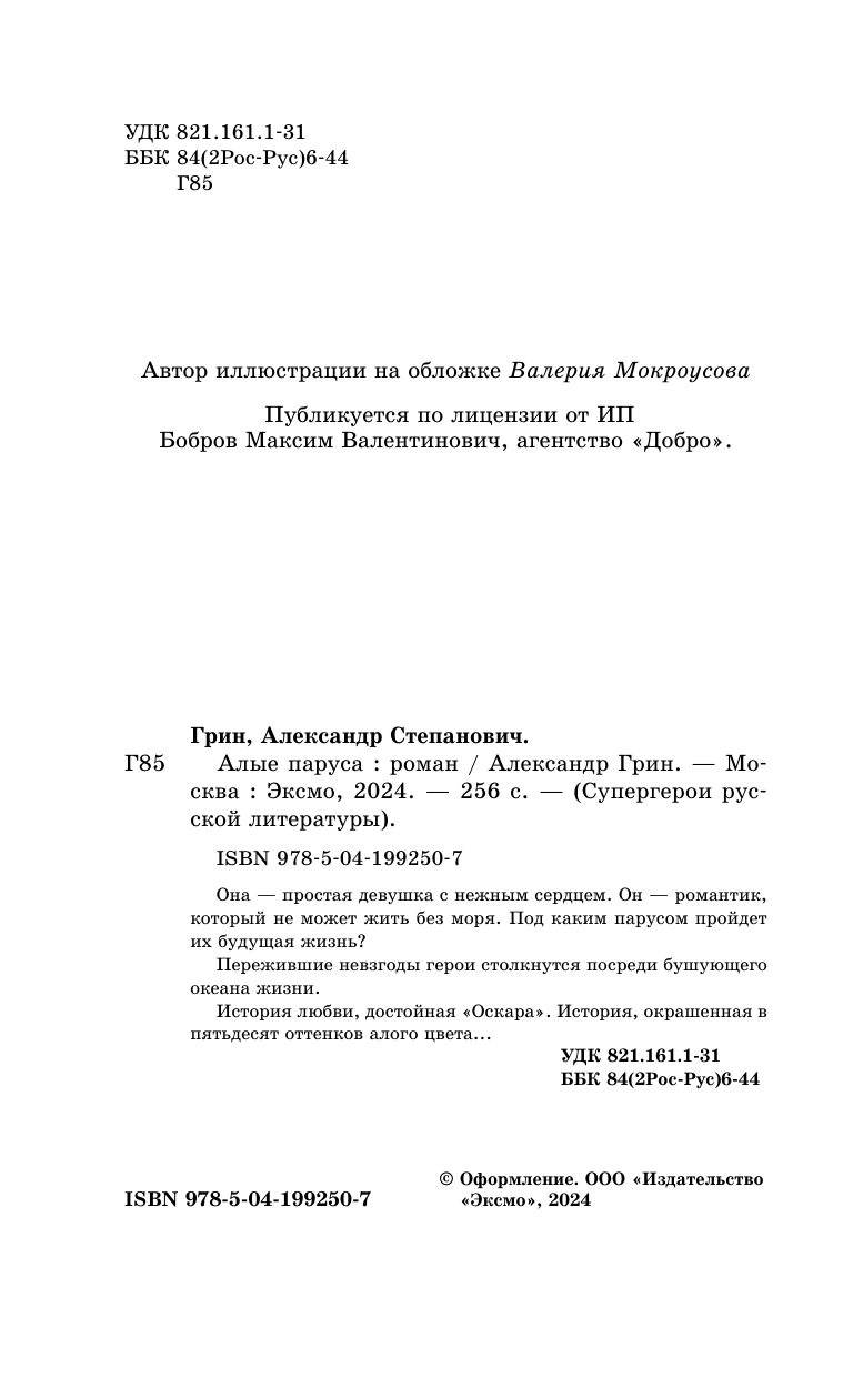 Книга: Алые паруса (Александр Грин); Эксмо, Редакция 1, 2024