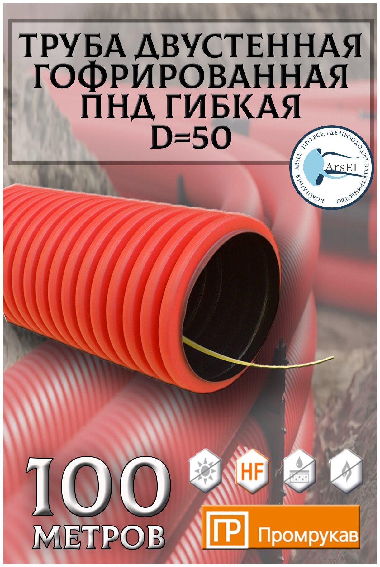 Труба гофрированная Промрукав двустенная ПНД гибкая тип 450 (SN26) с/з красная д50 (100м) PR15.0021