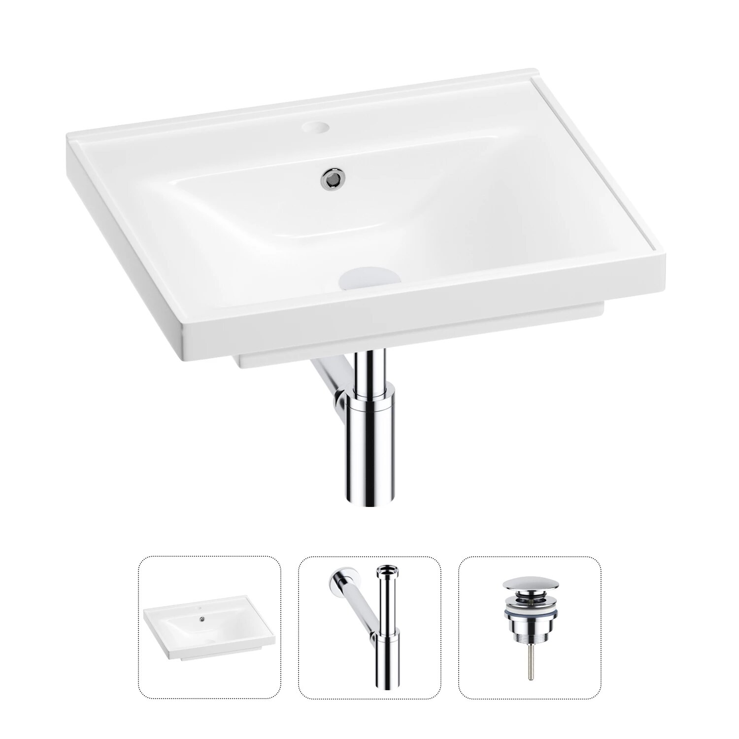 | Дополнительная информация | прямоугольная раковина белого глянцевого цвета, сифон, донный клапан в цвете хром |