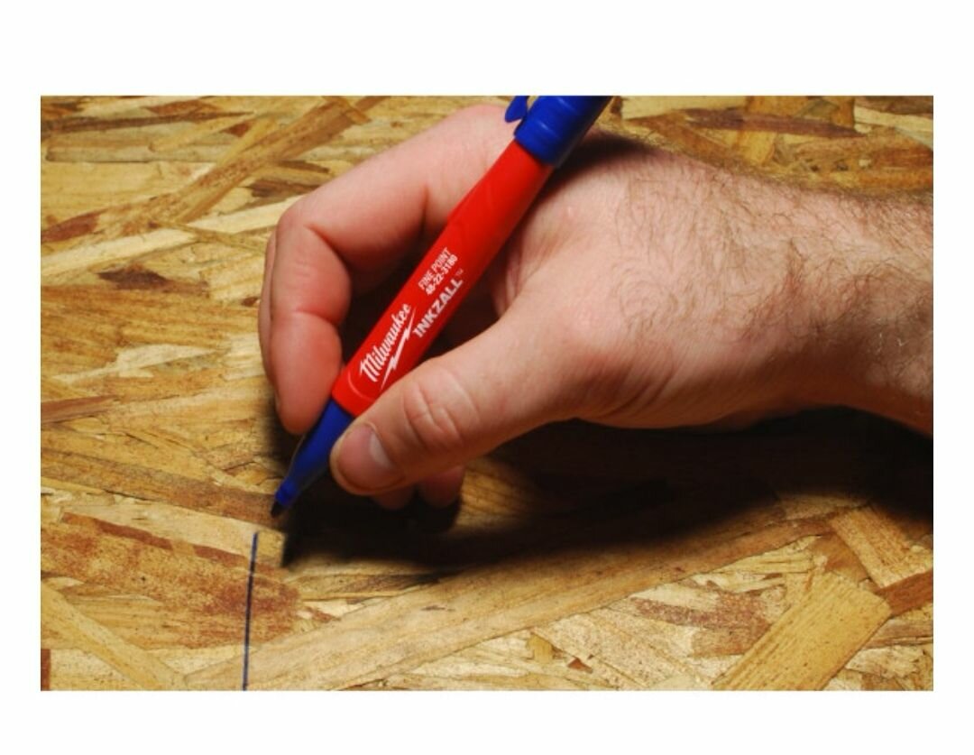 Маркер для стройплощадки Milwaukee INKZALL тонкий, синий используется для нанесения яркой маркировки на различные материалы в процессе строительных работ. Перо маркера остается острым, не плющится и не изгибается под давлением. Акриловое перо идеально подходит для неровных поверхностей, таких как ОСП и бетон. Маркер продолжает писать после 72 часов хранения со снятым колпачком. Клипса на колпачке служит для удобного ношения на рабочей одежде.