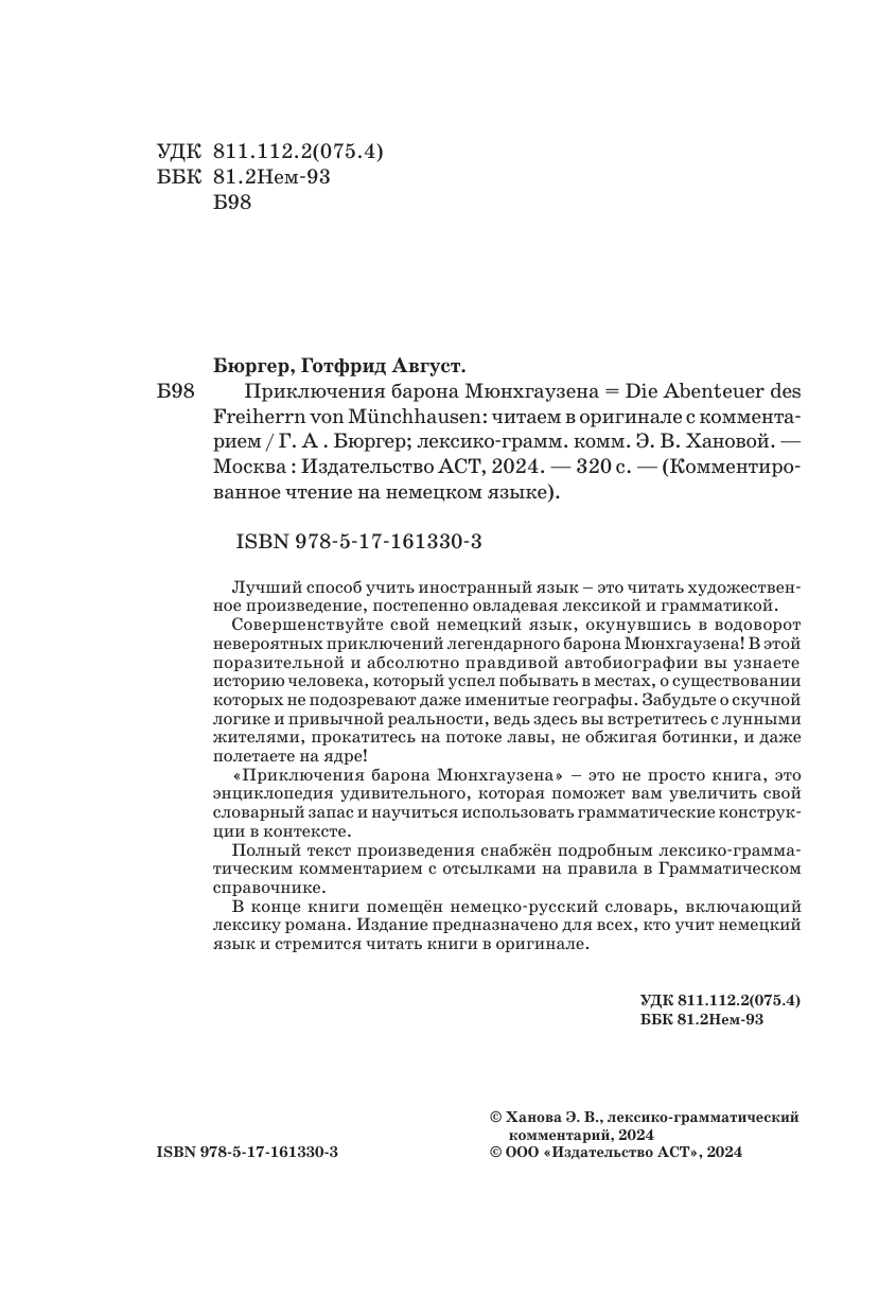 Сервис сравнения цен СкидкаГИД предлагает сравнить цены на товар «Книга: Приключения барона Мюнхгаузена = Die Abenteuer des Freiherrn von Munchhausen: читаем в оригинале с комментарием (Готфрид Август Бюргер); АСТ, 2024»