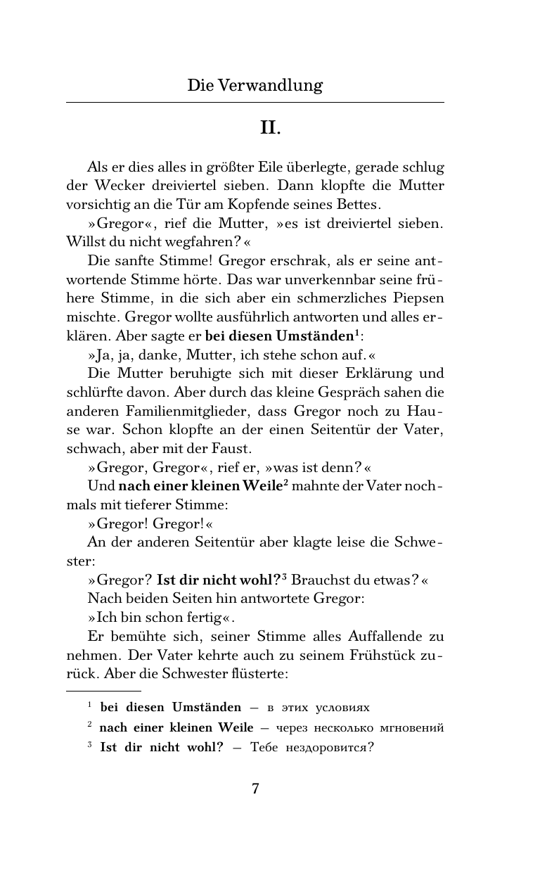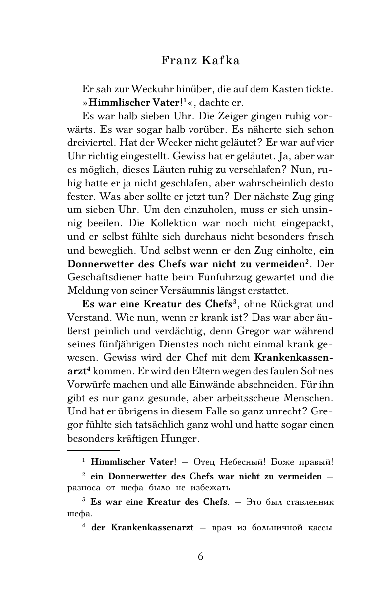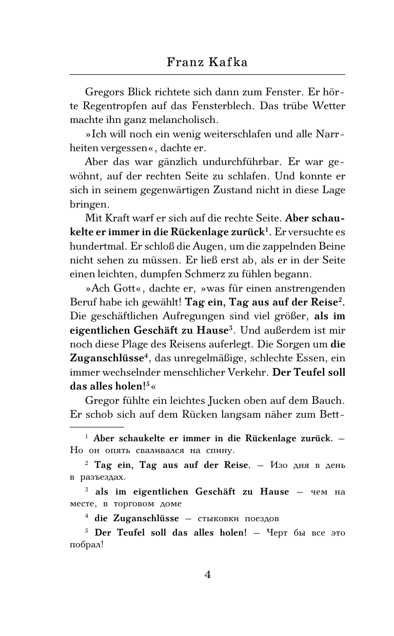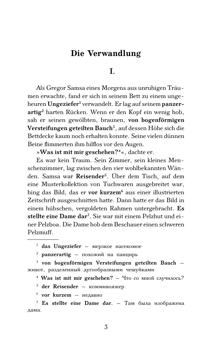 В данном сборнике представлены два выдающихся произведения немецкого писателя Франца Кафки – «Превращение» и «Письмо отцу».«Превращение» – это повесть о Грегоре Замзе, коммивояжере, для которого обычное утро обернулось кошмаром, изменившим его привычную жизнь навсегда. Как физические изменения главного героя повлияют на его взаимоотношения с семьей и психологическое состояние? Как мир воспримет его новое «я»?«Письмо отцу» – это глубоко личный, откровенный текст, в котором Кафка описывает сложные отношения со своим отцом. Эти письма представляют собой попытку разобраться в своих чувствах и исследовать, как отношения с отцом повлияли на его личную и профессиональную жизнь. Могут ли слова на бумаге помочь преодолеть личные трагедии и найти понимание?Тексты произведений адаптированы для продолжающих изучать немецкий язык средней ступени (уровни B1-B2 – Oberstufe) и снабжены комментариями. После рассказов предлагаются упражнения с ключами. В конце книги – словарь используемой лексики, облегчающий чтение.