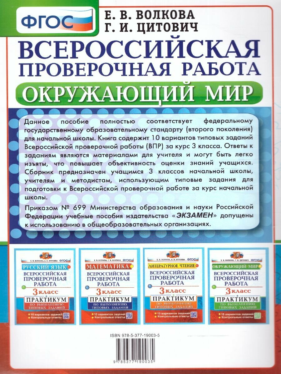 Окружающий мир. 3 класс. Всероссийская проверочная работа. Практикум по выполнению заданий (Волкова Елена Васильевна, Цитович Галина Ивановна); Экзамен Издательство, 2023