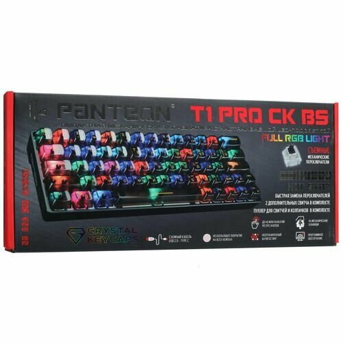 Jet.A Panteon T1 Pro CK BS - механическая игровая клавиатура с LED-подсветкой Full RGB Light. Технология Full RGB позволяет тонко настраивать подсветку и выбирать цвет свечения как для всего поля, так и для каждой клавиши в отдельности при помощи фирменного программного обеспечения. Колпачки клавиш Cristal Keycaps создают неповторимый эффект свечения всего поля клавиш клавиатуры.