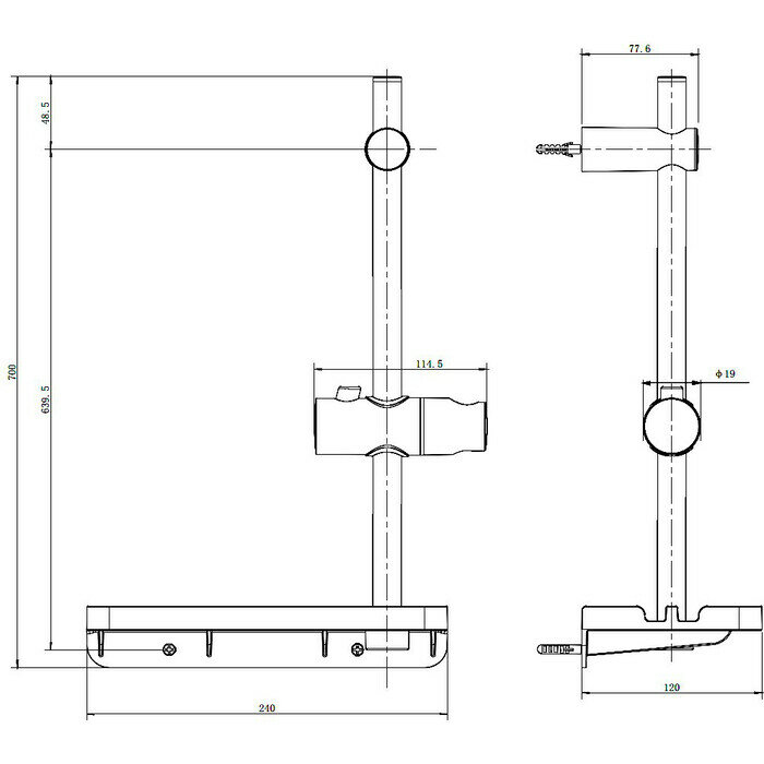 - Держатель ручного душа регулируемый по высоте, поворотный.