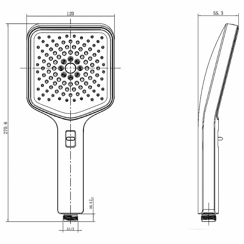 - Размер ручного душа (ШхВ): 120х271 мм.