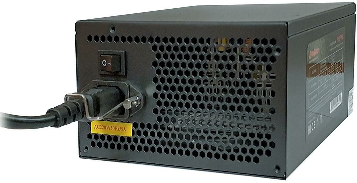 Это качественный источник питания для персонального компьютера, способный снабдить компоненты постоянным током и необходимым каждому элементу напряжением. Мощности рассматриваемой модели будет достаточно для стабильной работы системы игрового класса. За эффективное охлаждение устройства, даже на пиковых нагрузках, отвечает вентилятор диаметром 120 мм. Блок питания имеет разъем 20+4-pin для материнской платы, 4+4pin для процессора, 3 SATA для питания жесткого диска и оптического привода, 2 коннектора для видеокарты, Molex для подключения старых жестких дисков и некоторых других устройств. Благодаря многоуровневой защите БП обеспечит безотказную работу системы.