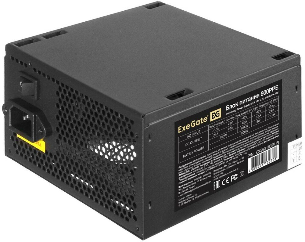 Блок питания ATX Exegate 900W APFC 80 PLUS 120mm fan кабель 220V EX292163RUS-PC