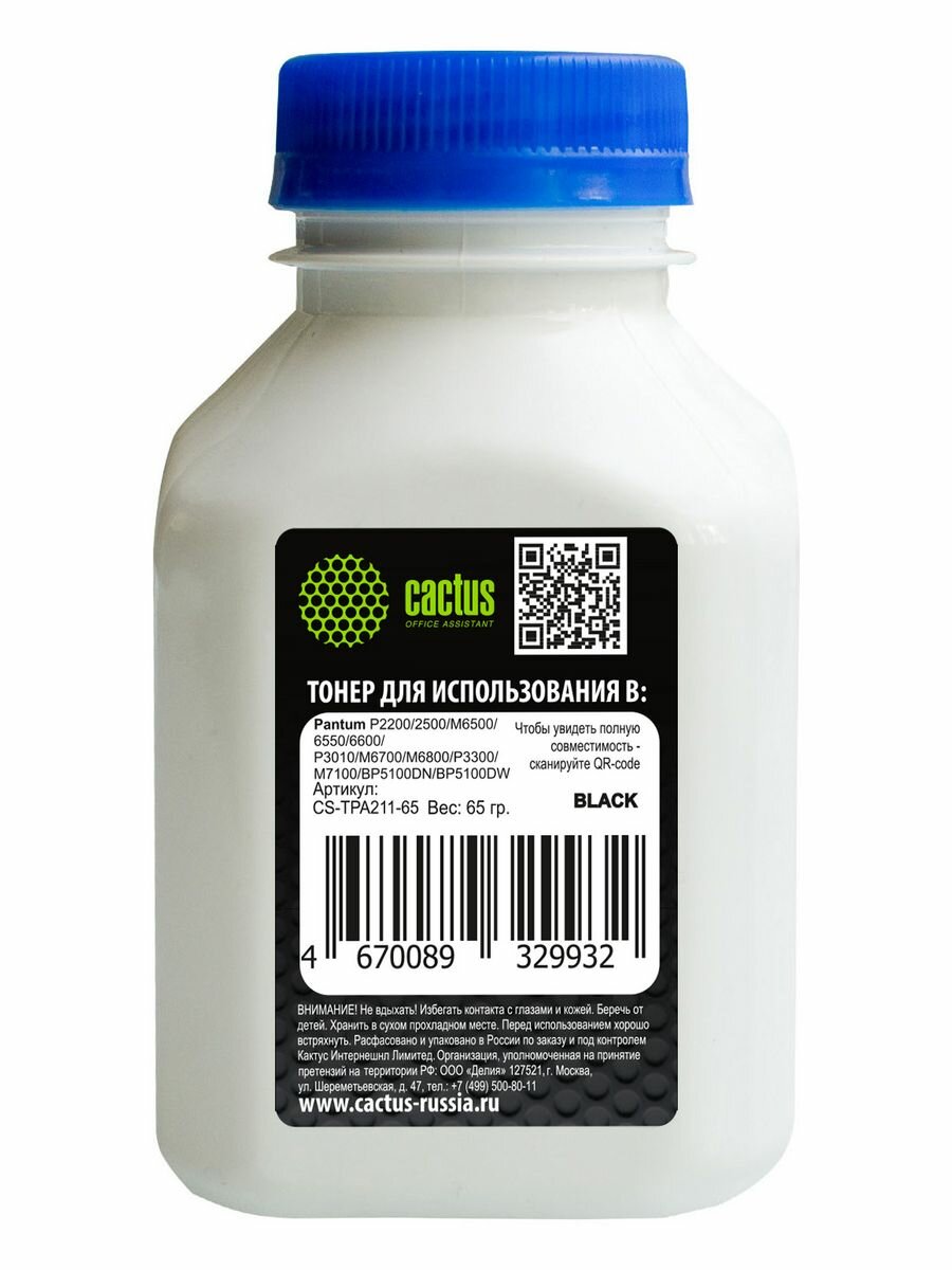 Тонер Cactus черный флакон 65гр. Pantum P2200/2500/M6500/6550/6600 для принтера CS-TPA211-65