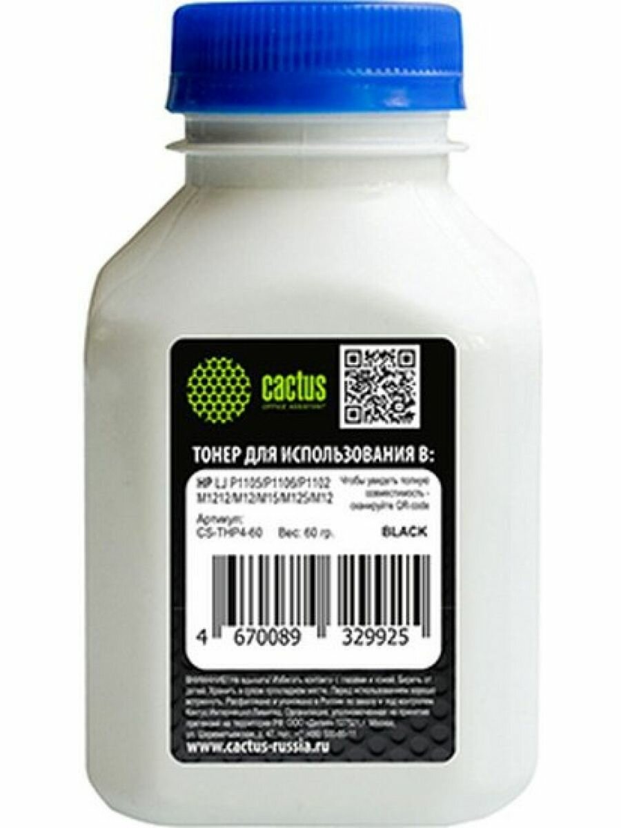 Тонер Cactus черный флакон 60гр. HP LJ P1005/P1006/P1100/P1102 для принтера CS-THP4-60