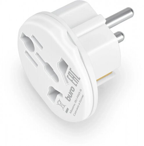 Адаптер-переходник Buro (1 розетка) белый (пакет ПЭ)
