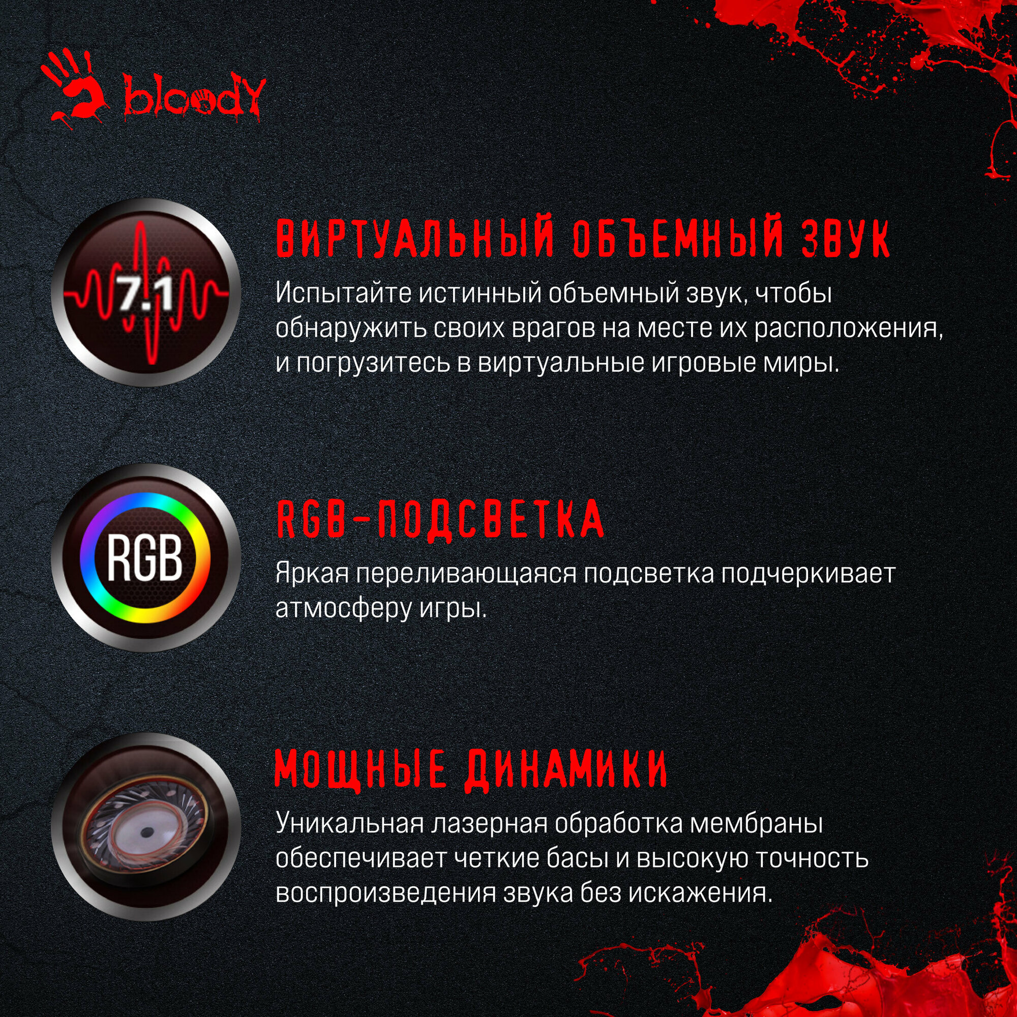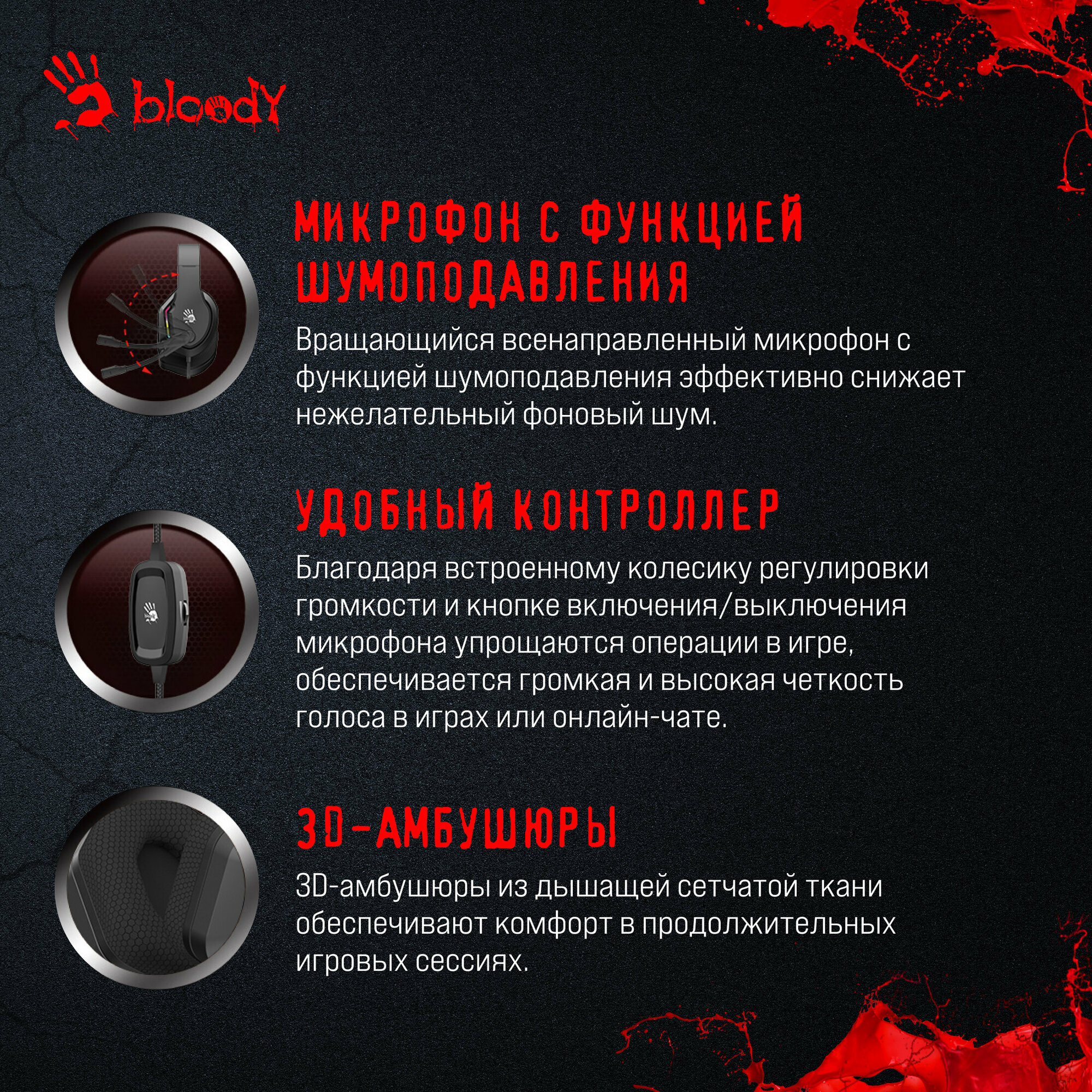 Гарнитура A4Tech черная 2м мониторные USB оголовье (1973152) Bloody G260