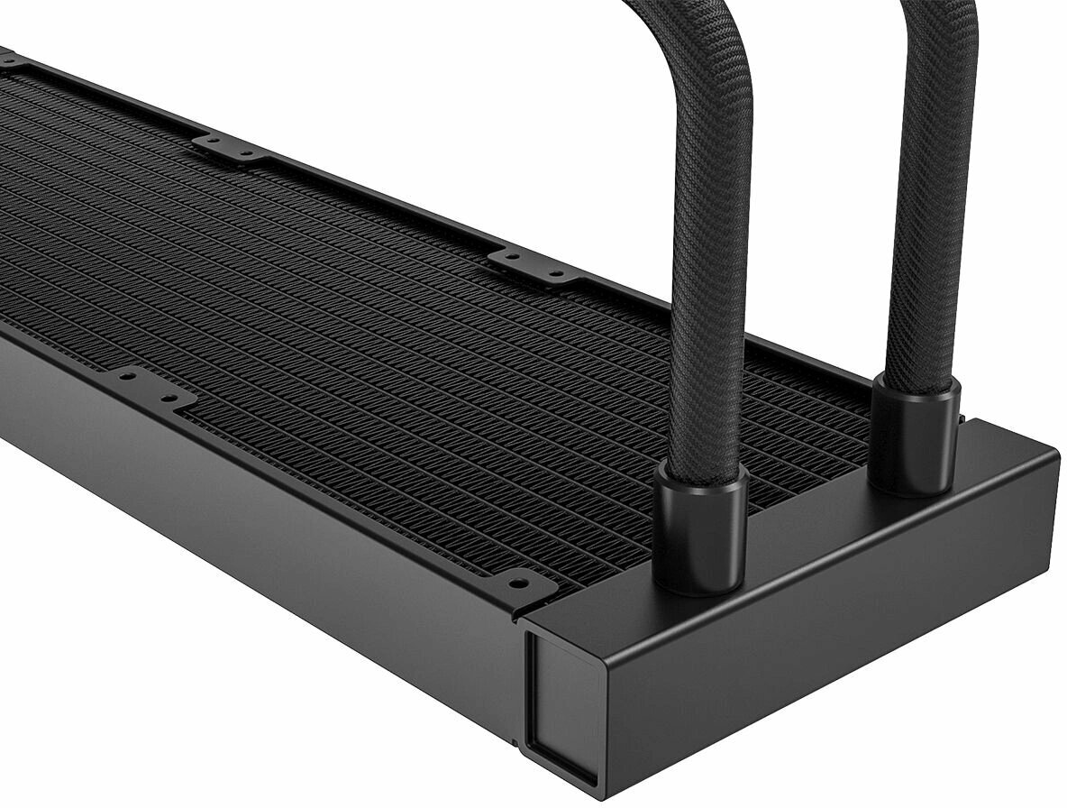 Радиатор системы имеет монтажный размер 360 мм, что обеспечивает большую площадь охлаждения и эффективное удаление тепла. Помпа системы оснащена керамическим подшипником, который обеспечивает долгий срок службы и надежную работу.