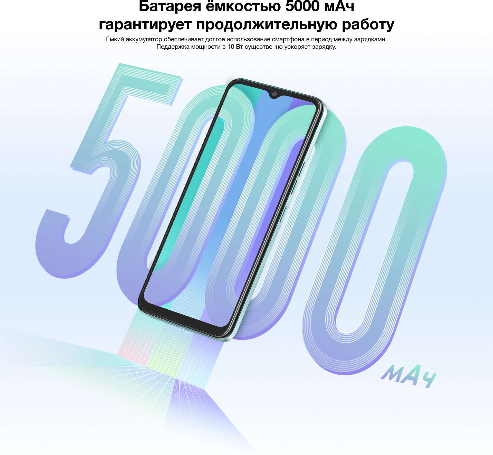 | Дополнительные особенности | Смартфон Itel A60s оснащен двухмодульной камерой с разрешением матрицы 8 Мп. Усиление четкости снимков производится при помощи светодиодной вспышки. Процессор Spreadtrum SC9863A с 8-ядерной архитектурой и 4 ГБ оперативной памяти не допускают промедлений при запуске приложений. Аккумулятор емкостью 5000 мАч обеспечивает до 112 ч работы в режиме прослушивания треков.,Смартфон Itel A60s в пластиковом корпусе аутентифицирует личность пользователя по отпечатку и чертам лица. На хранение файлов выделено 128 ГБ. Разрешение экрана диагональю 6.6 дюйма составляет 1612x720 пикселей. Матрица IPS предупреждает искажение оттенков. |